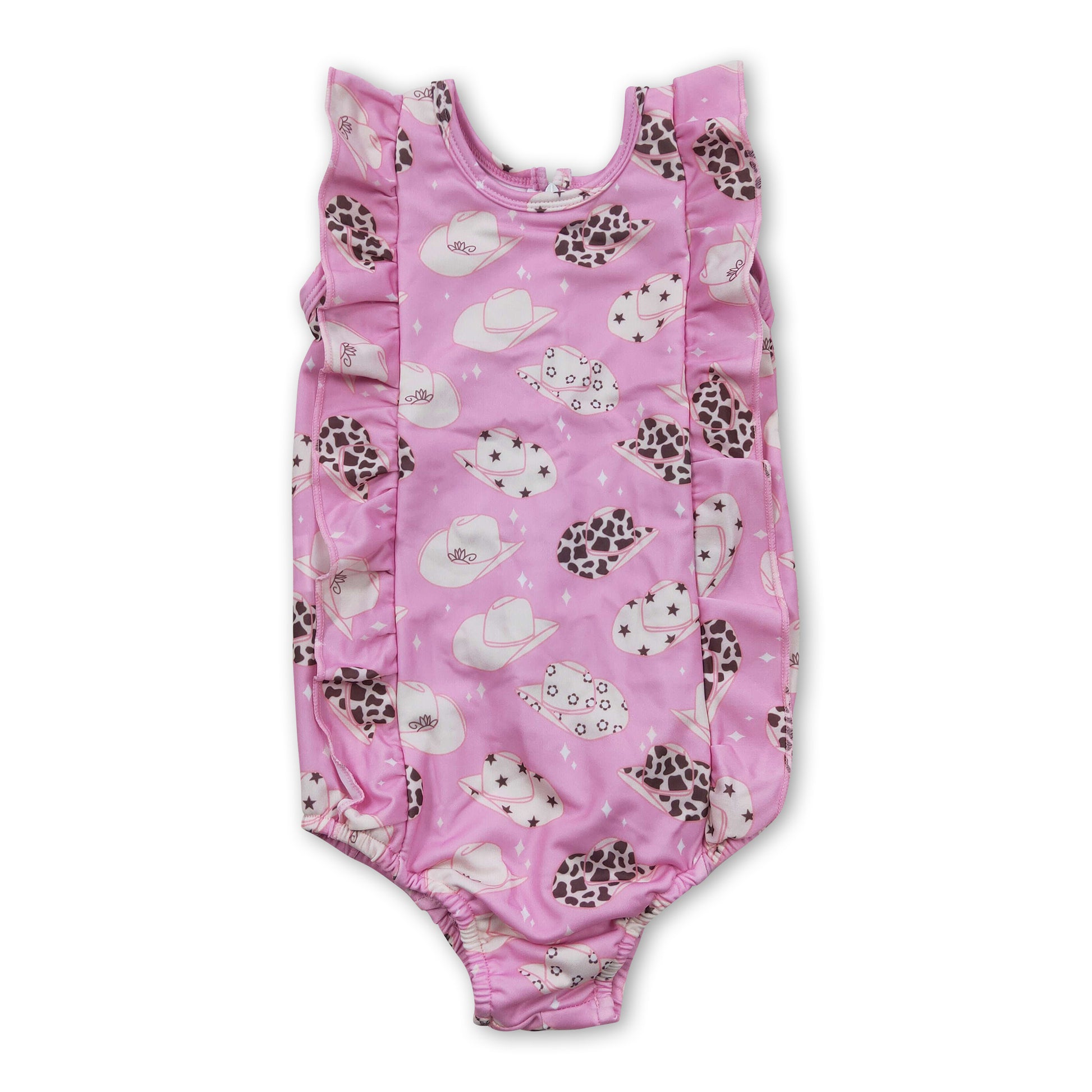 Hat print western one pc baby girls summer swimsuit