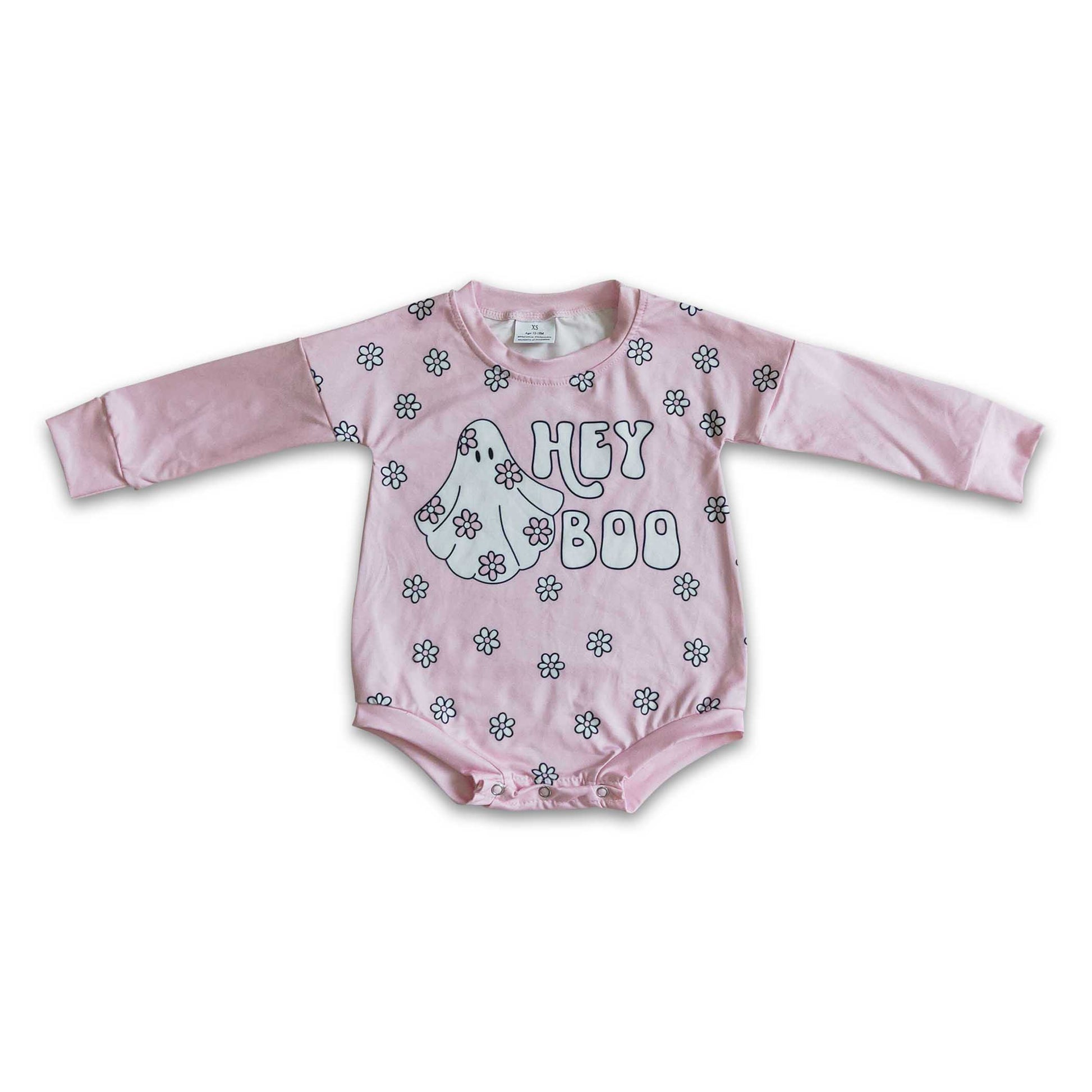 Hey boo pink floral baby girls Halloween romper