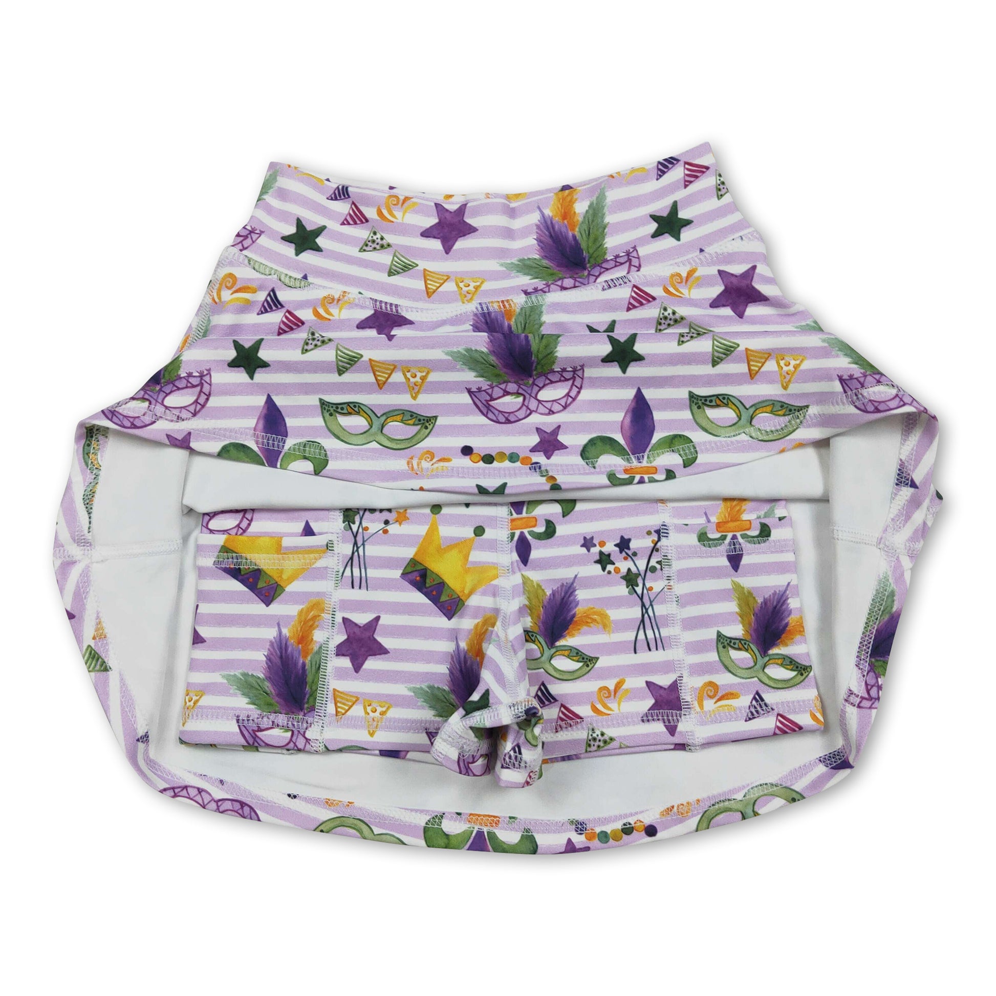 High waist stripe crown girls Mardi Gras activewear skirt