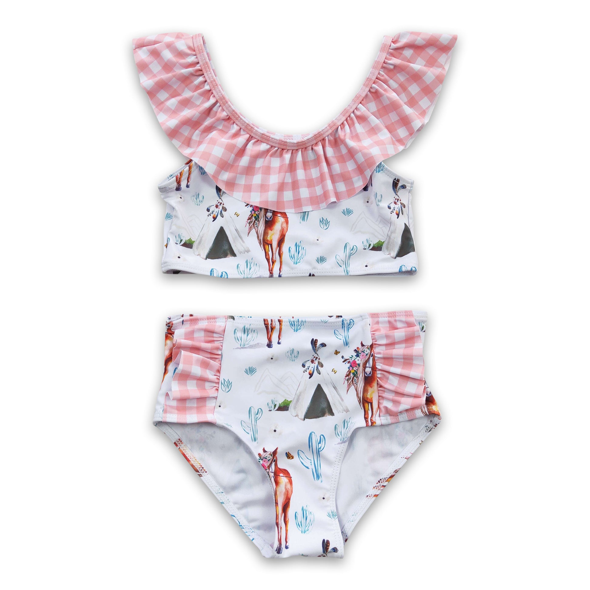 Horse cactus teepee lining kids girls 2 pcs swimsuit