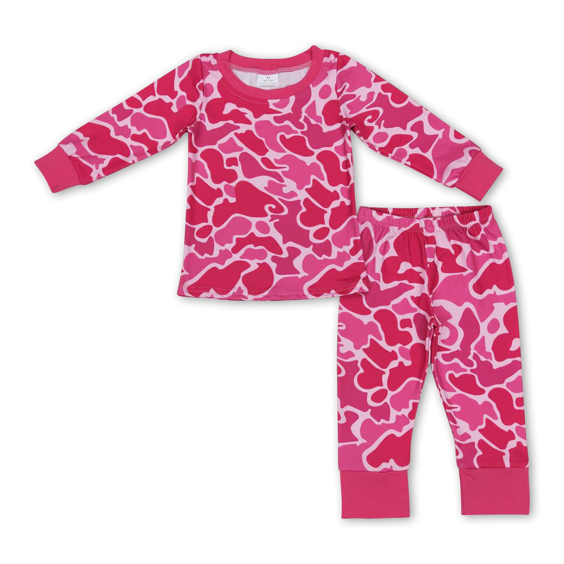Hot pink camo long sleeves kids girls pajamas