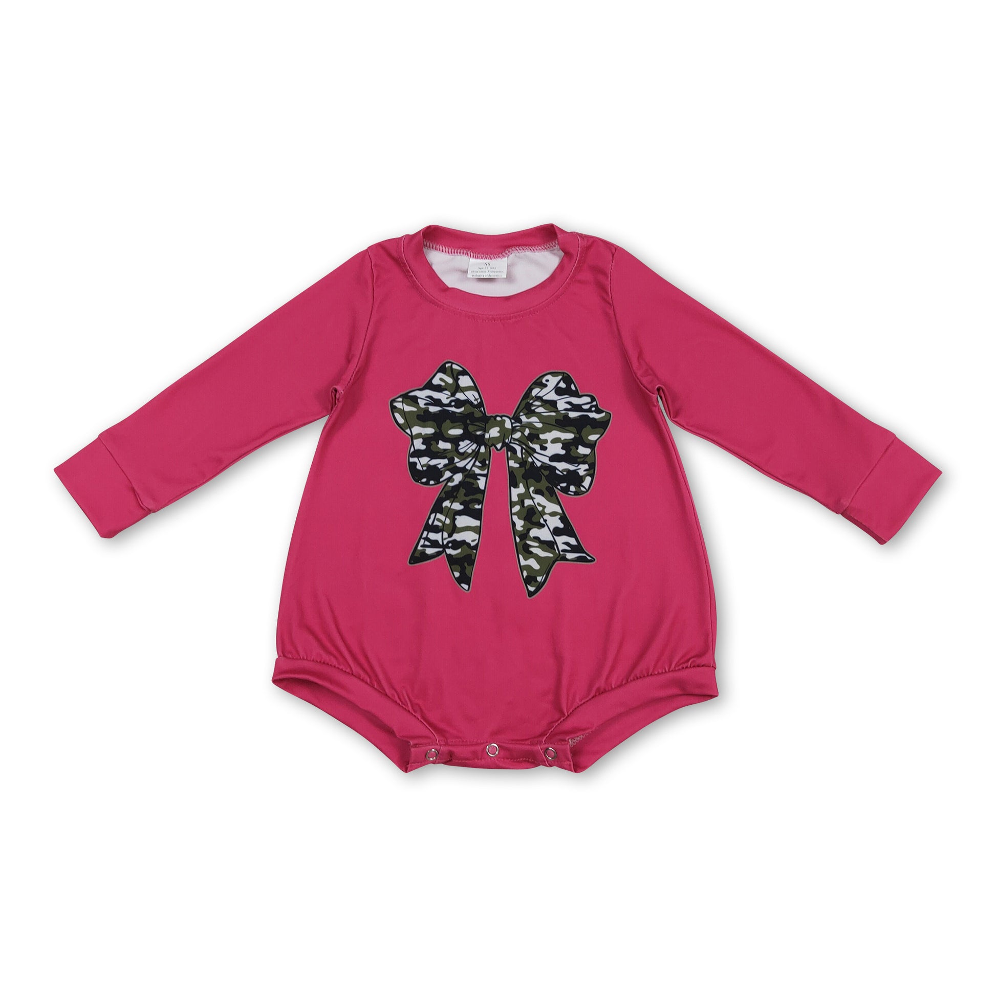 Hot pink long sleeves camo bow baby girls romper