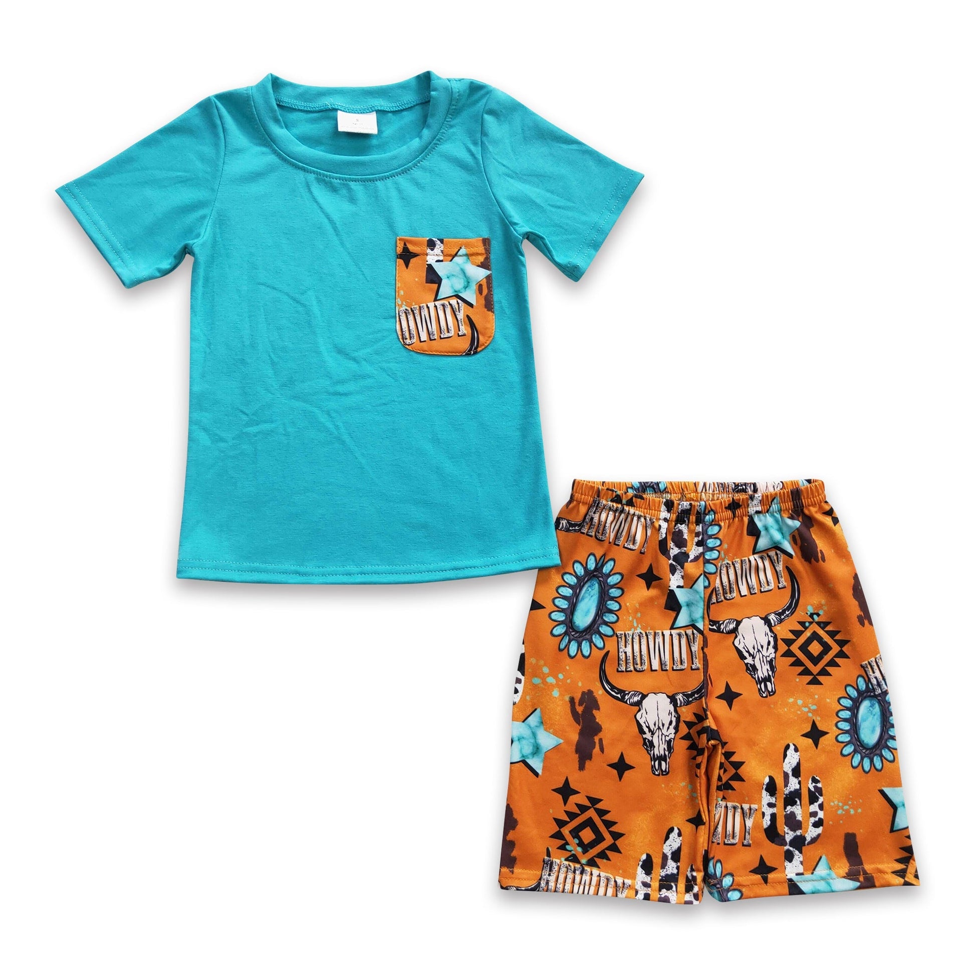 Howdy bull skull turquoise kids boy western outfits
