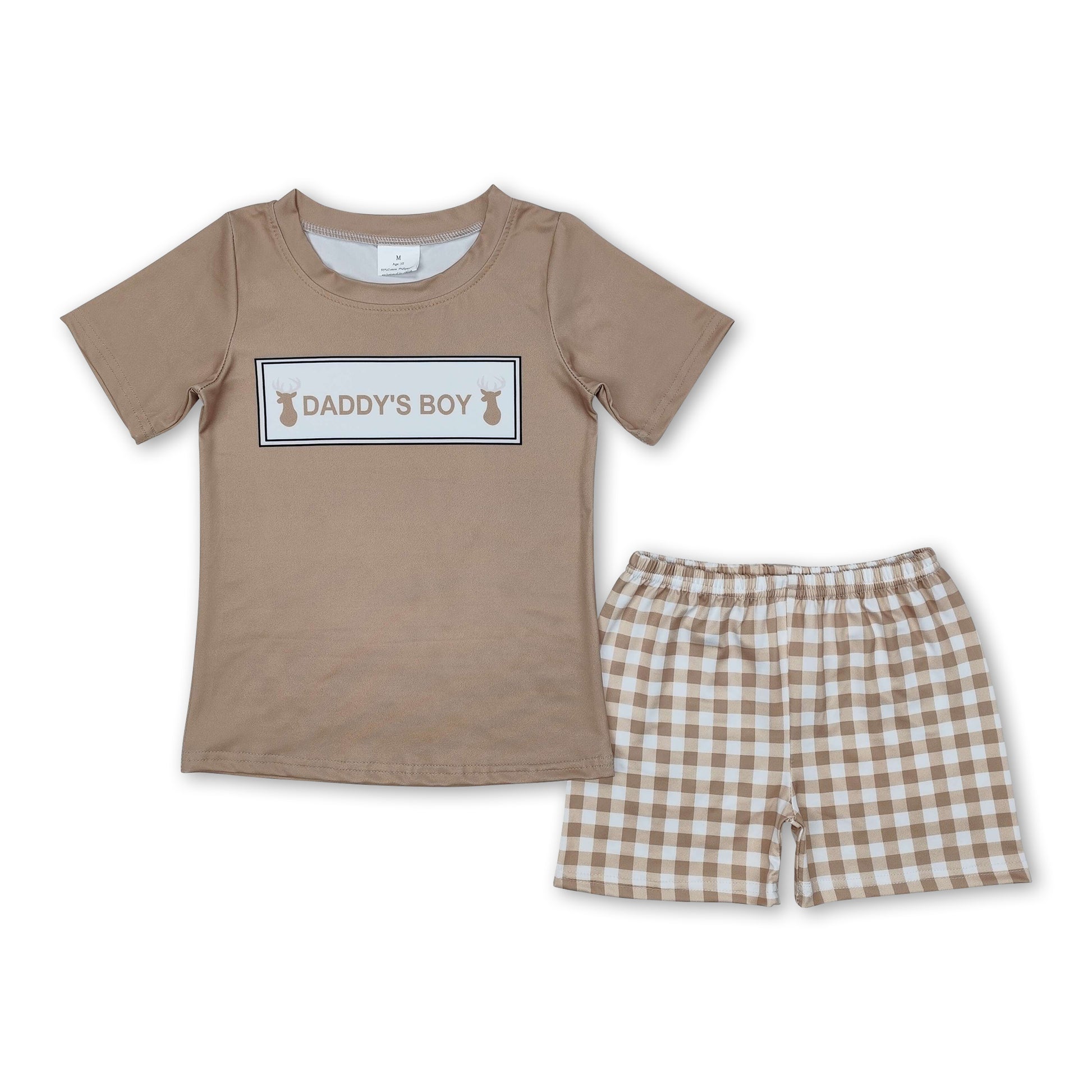 Khaki daddy's boy deer top plaid shorts kids boys clothes