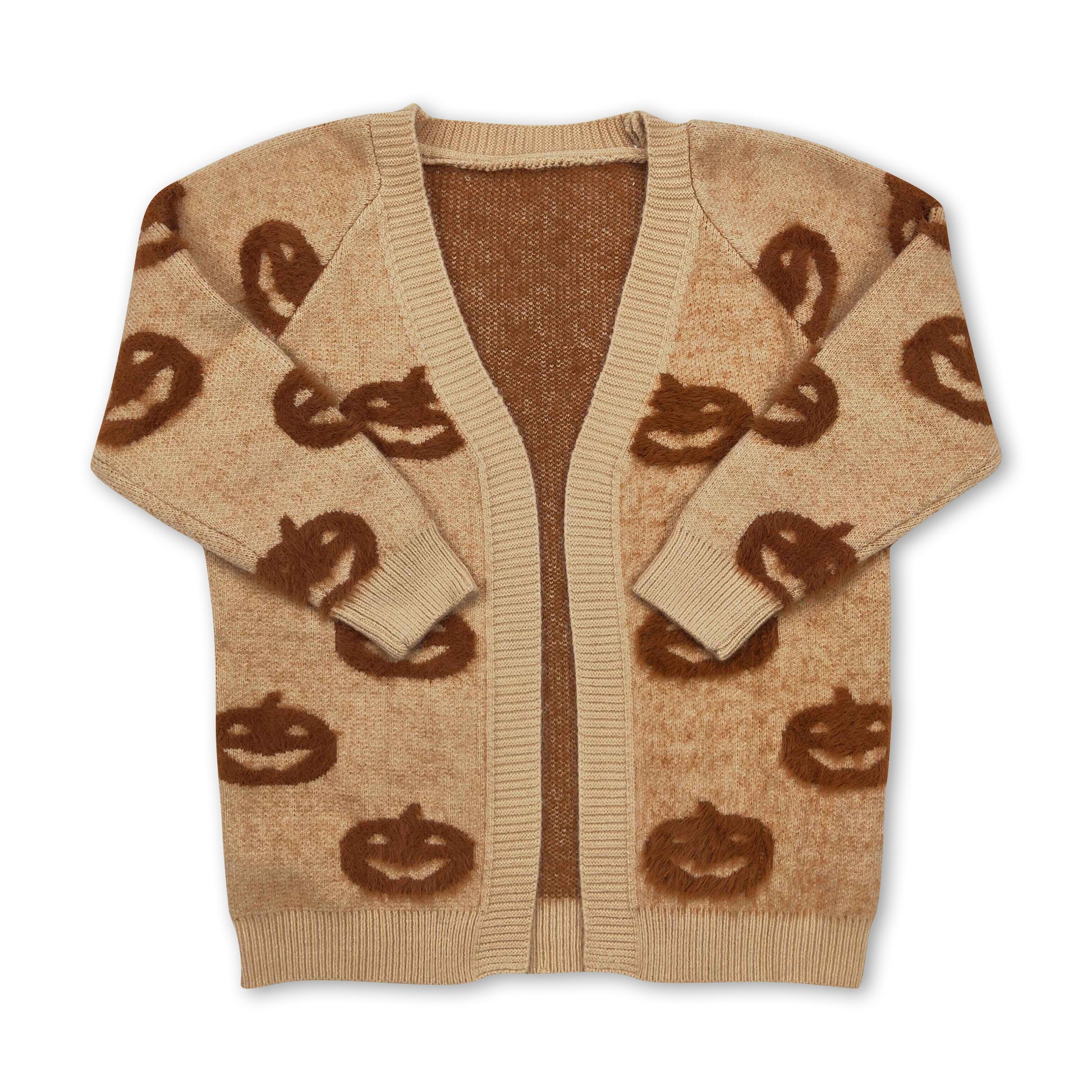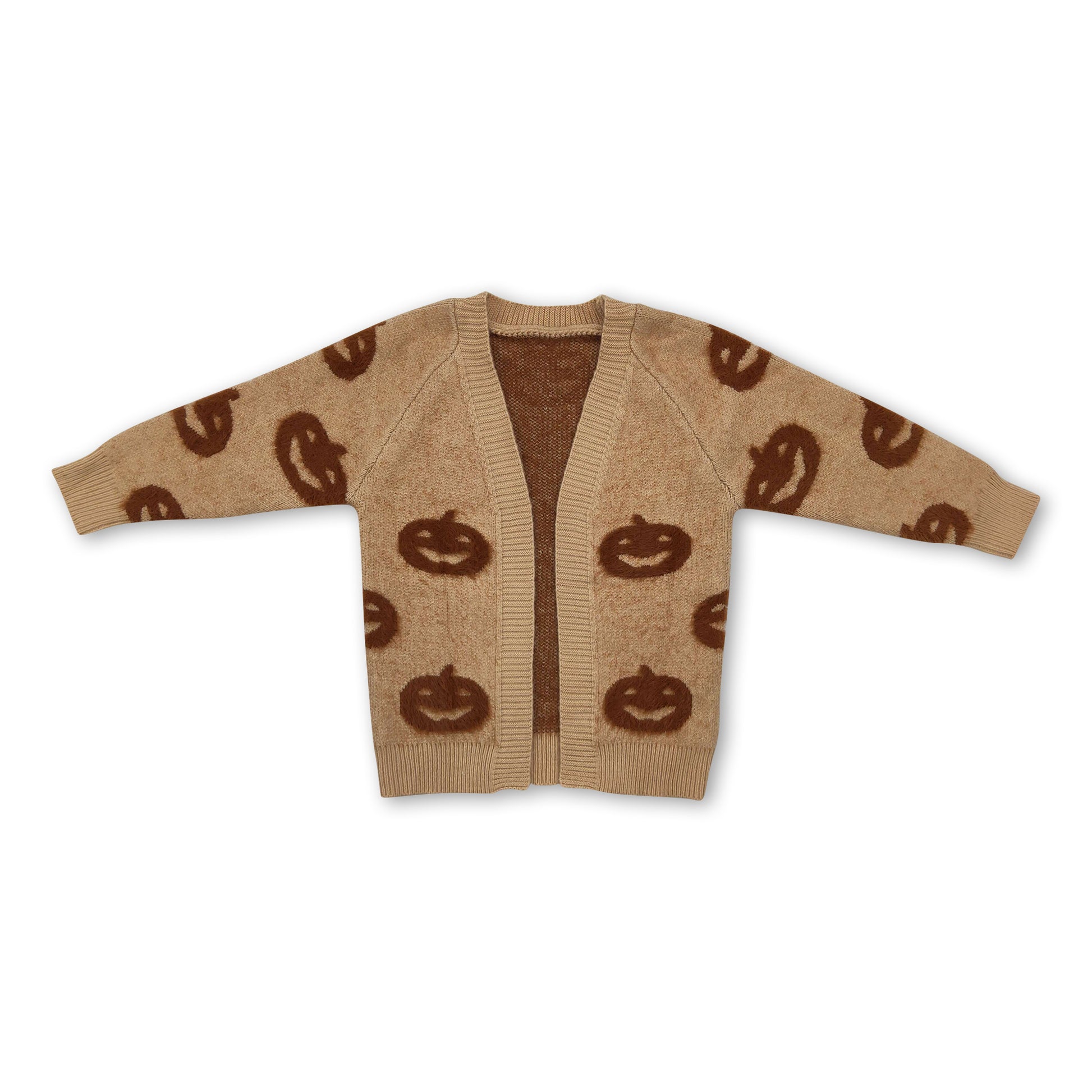 Khaki pumpkin cardigan girls Halloween sweater