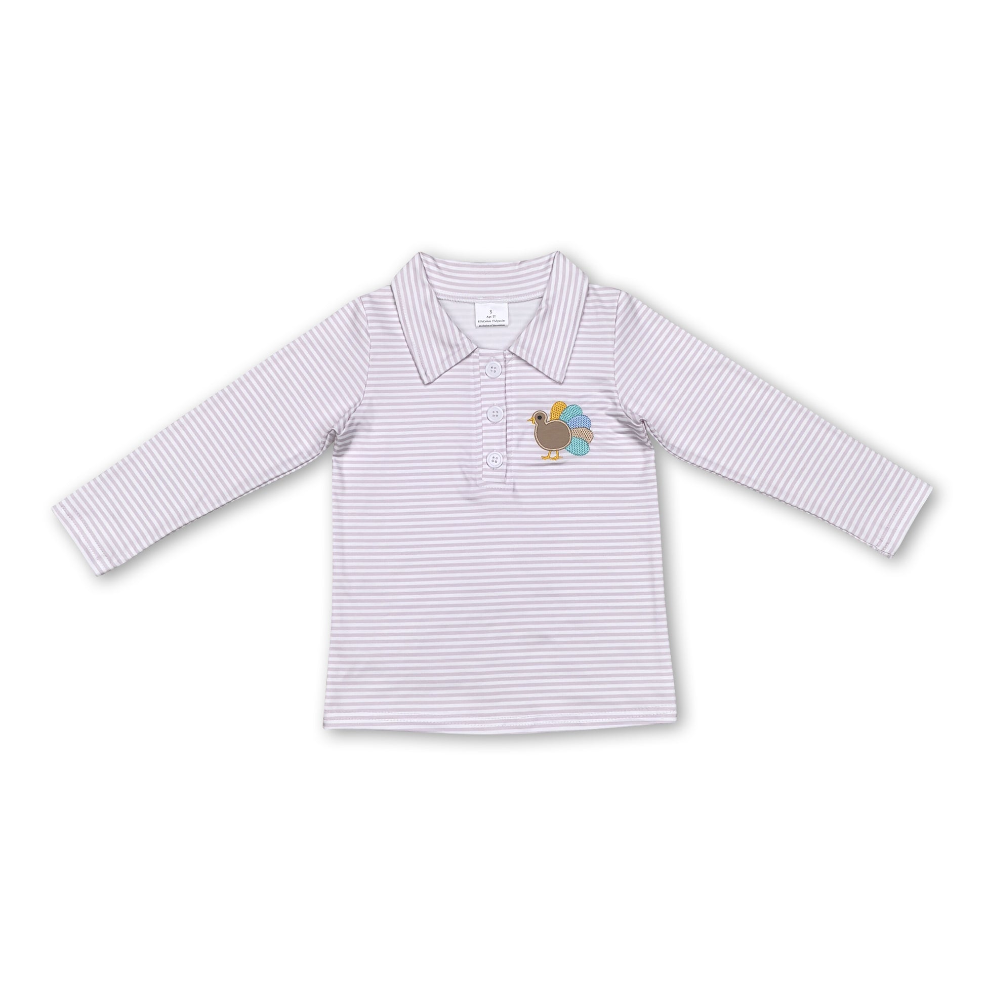 Khaki stripe turkey kids boys Thanksgiving polo shirt