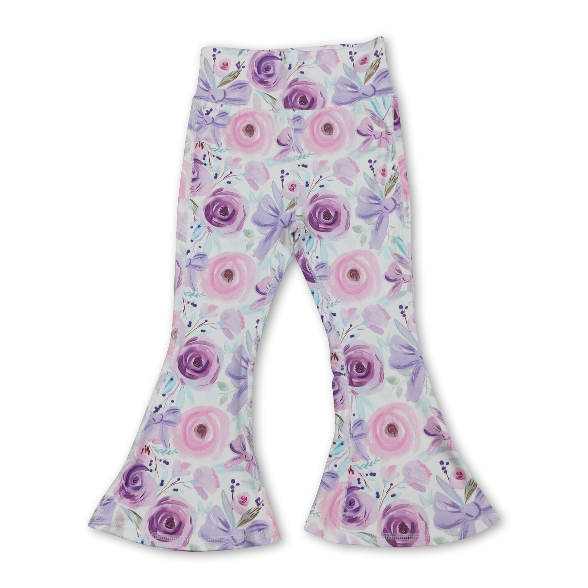 Lavender bow floral baby girls bell bottom yoga pants