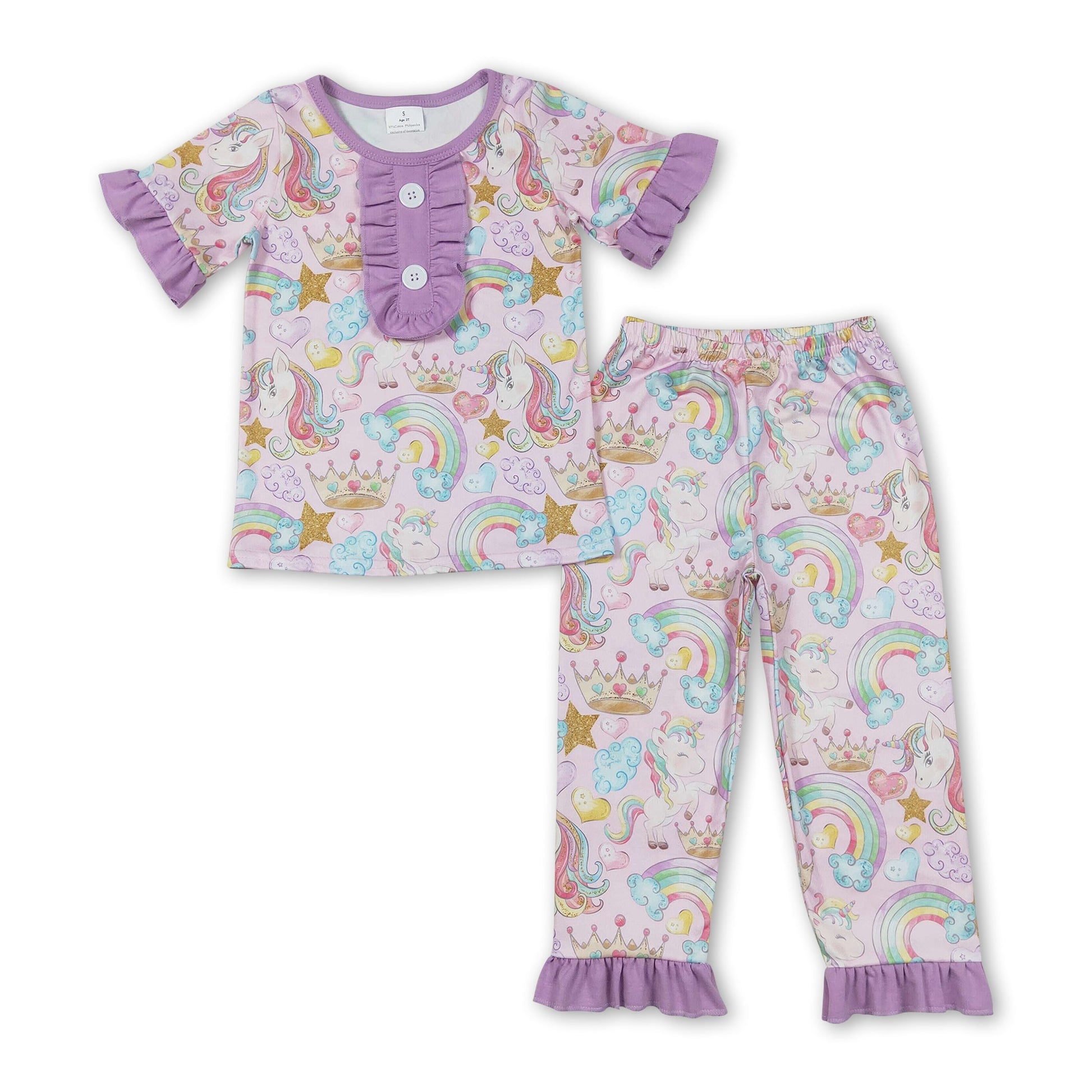 Lavender unicorn rainbow kids girls pajamas