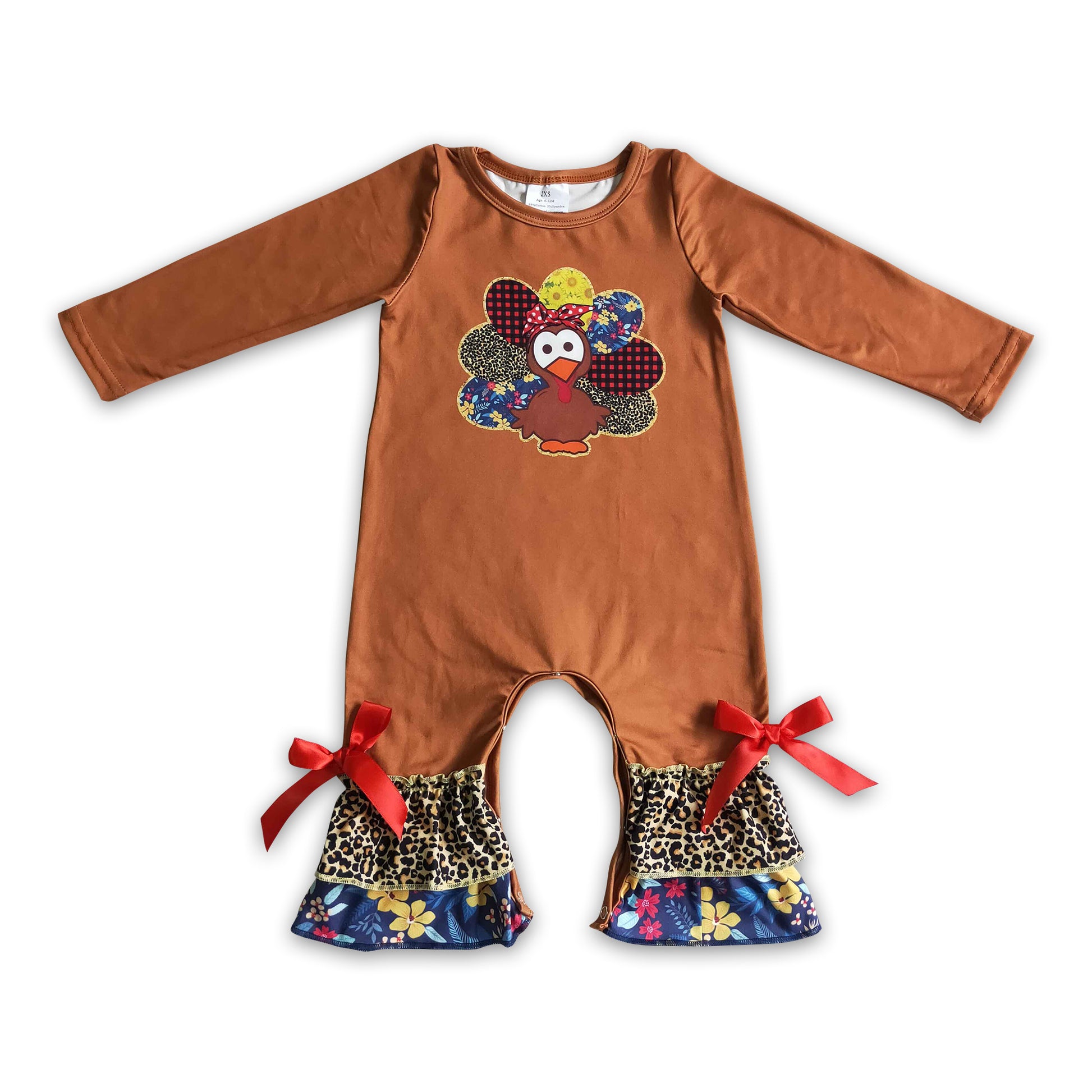 Leopard floral turkey baby girls ruffle Thanksgiving romper
