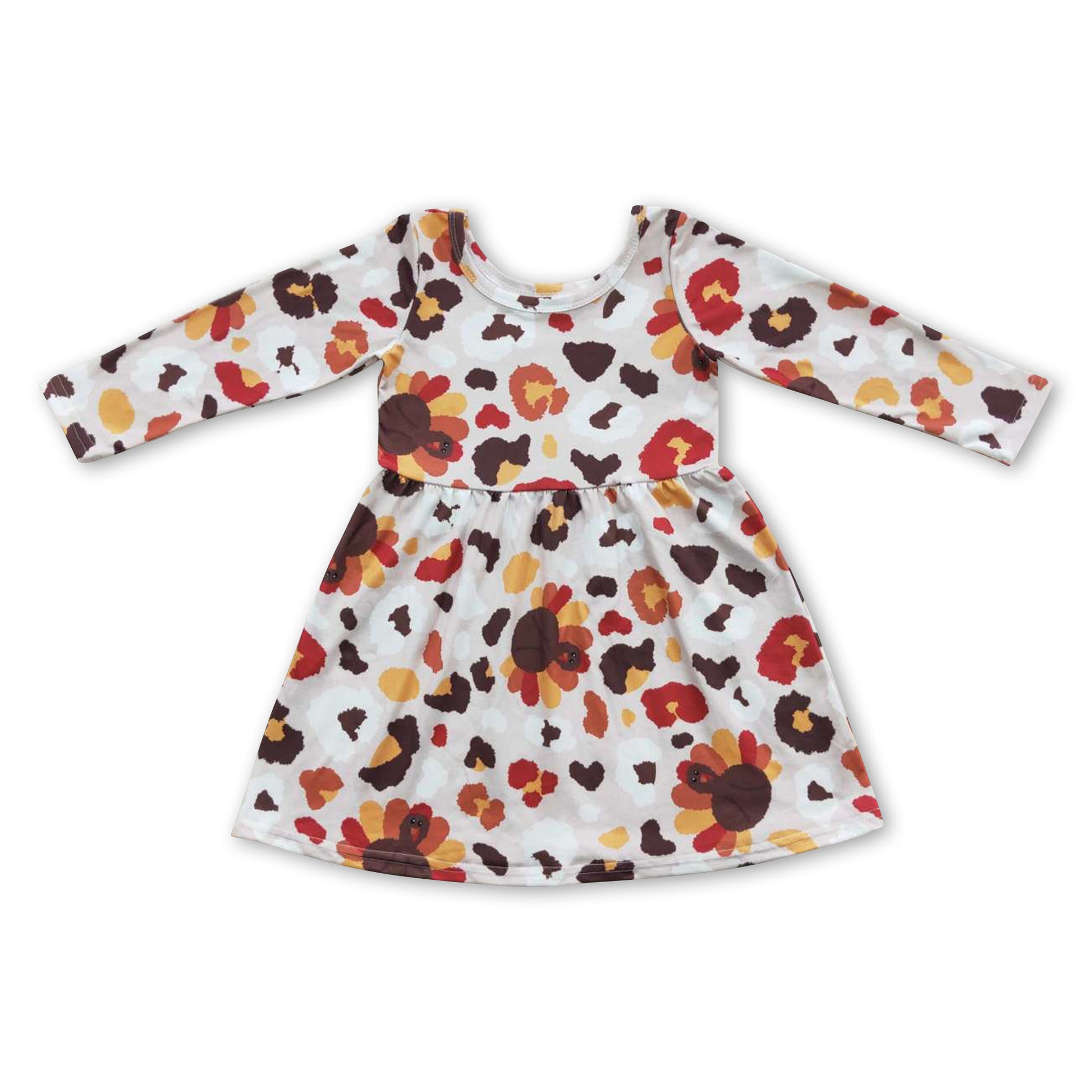 Leopard turkey long sleeves baby girls Thanksgiving dress