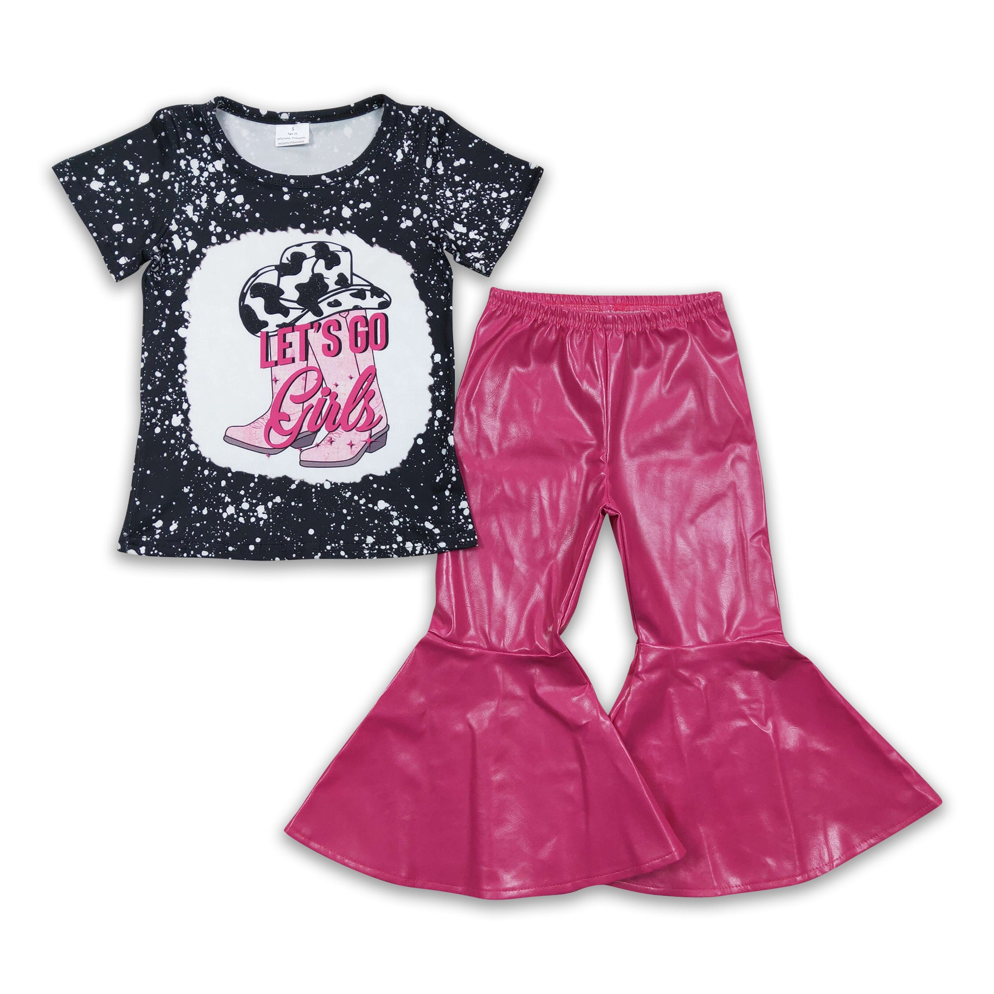 Let's go girls shirt hot pink leather bell bottom pants girls clothing