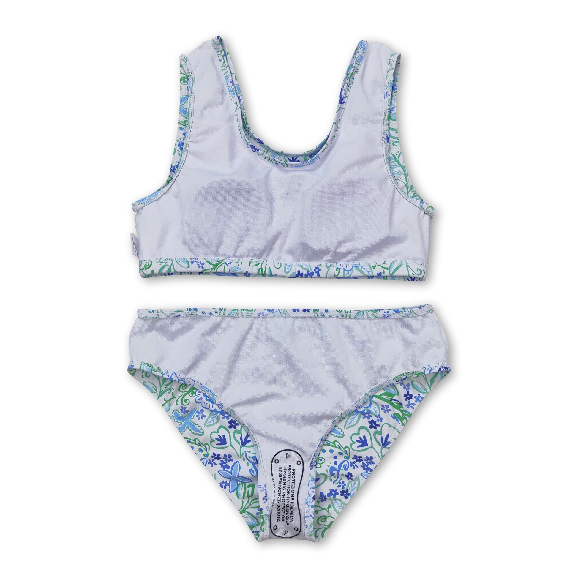 Light blue green floral 2pcs girls summer swimsuit