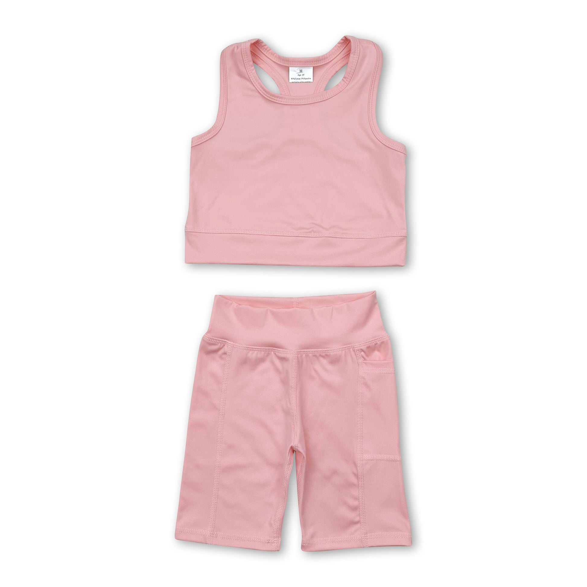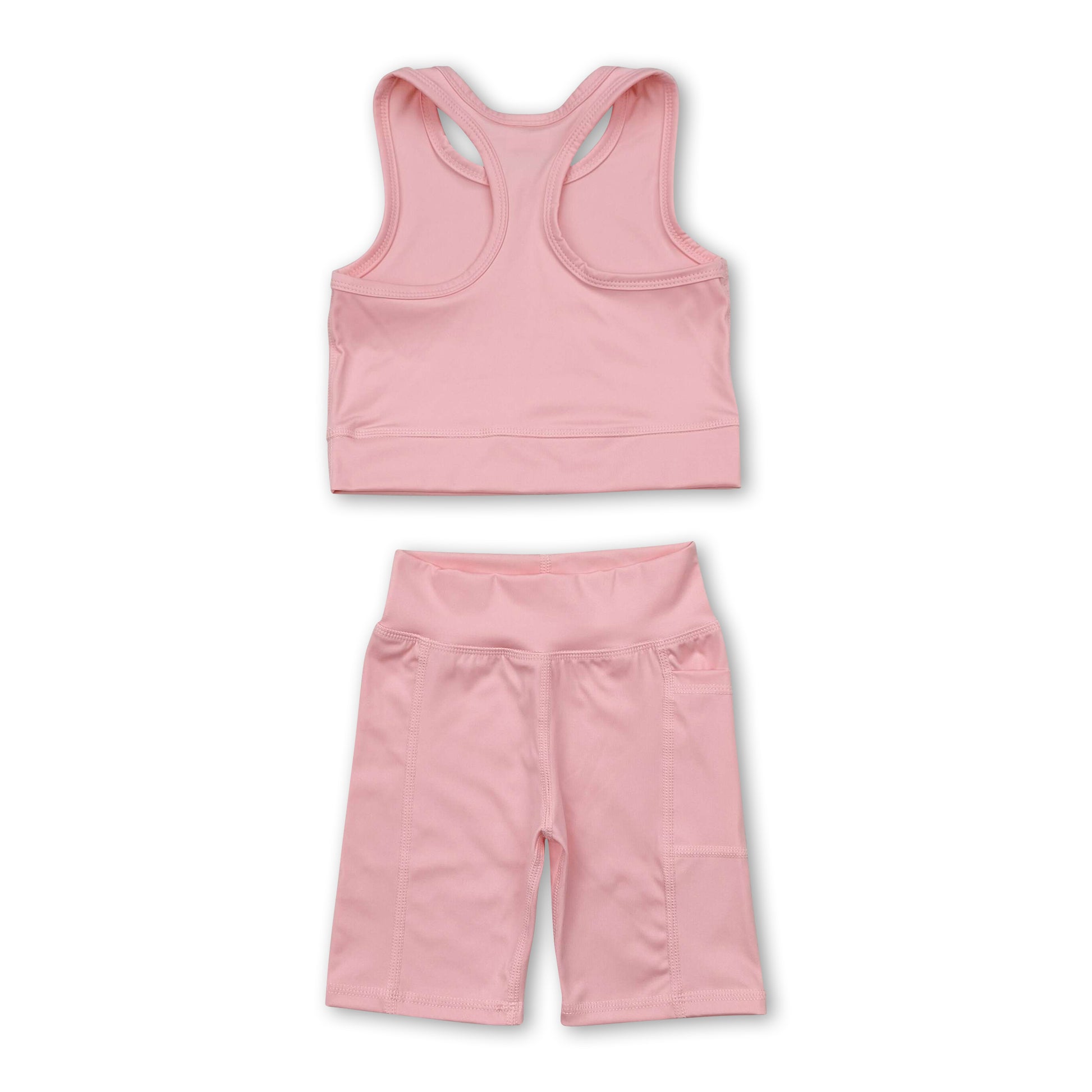 Light pink straps top shorts girls summer yoga clothes