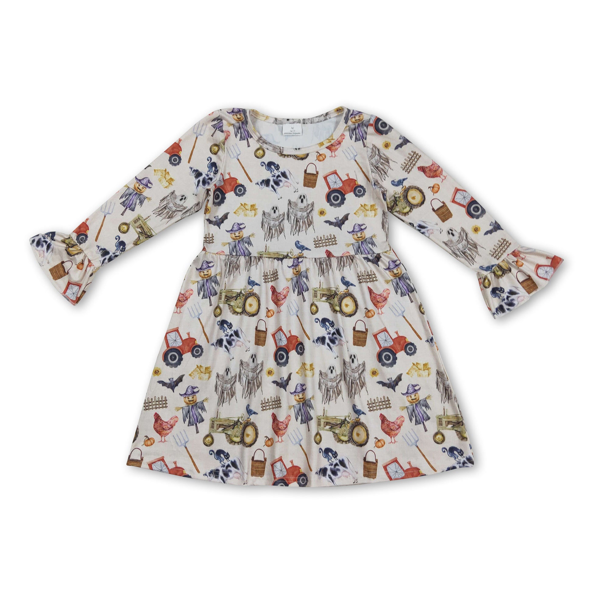Long sleeves bat pumpkin scarecrow farm girl Halloween dress