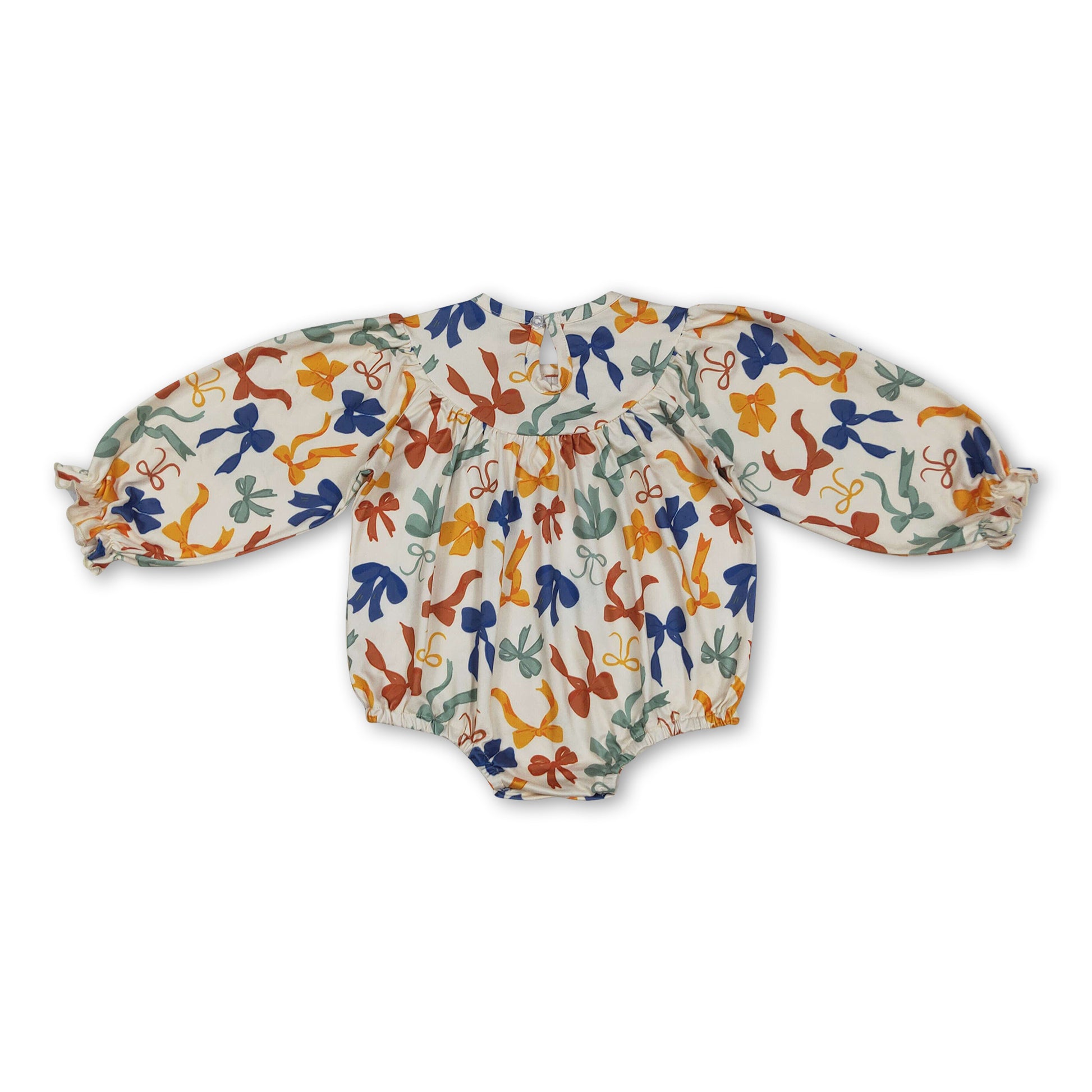 Long sleeves bows Thankful smocked girls Thanksgiving romper