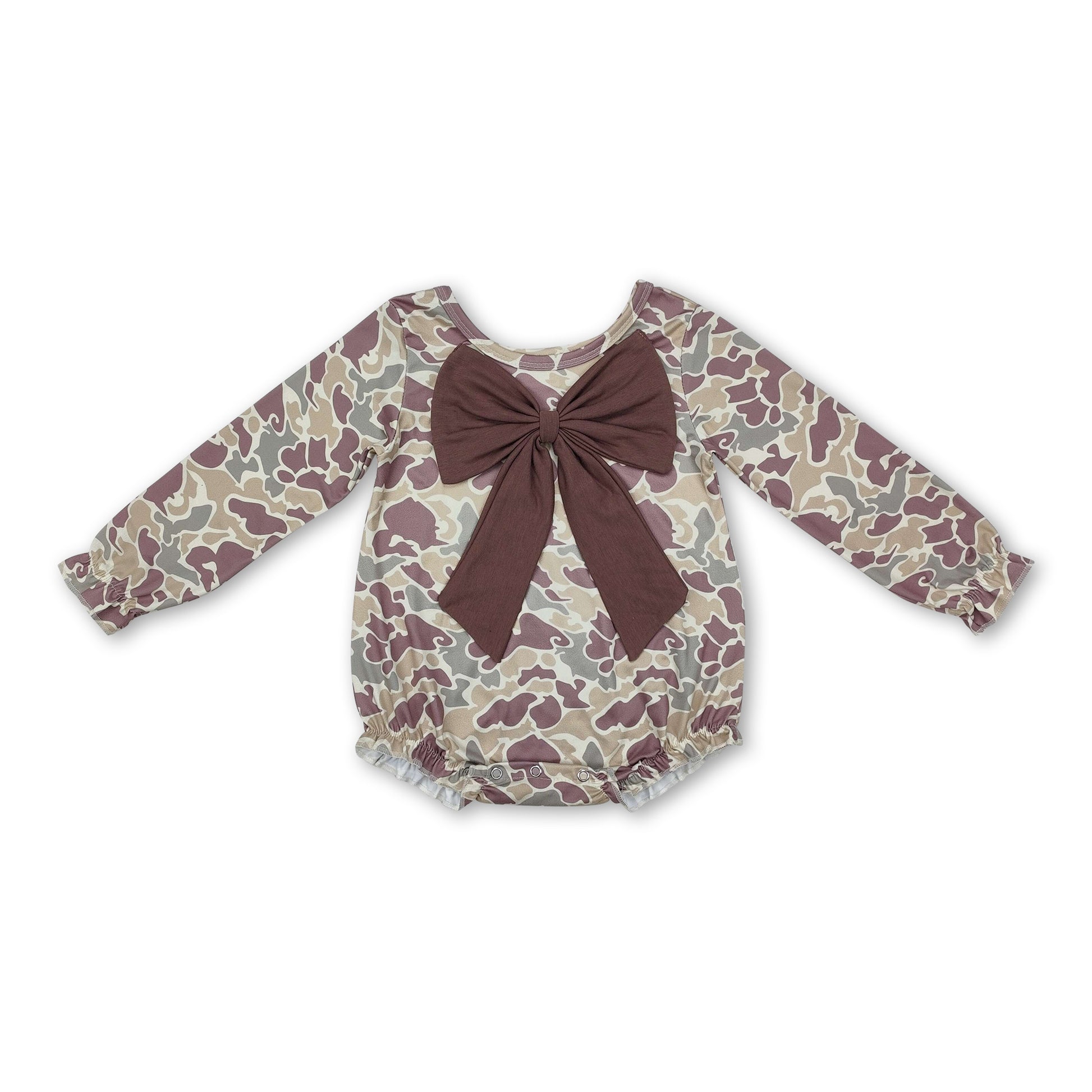 Long sleeves brown bow camo baby girls romper