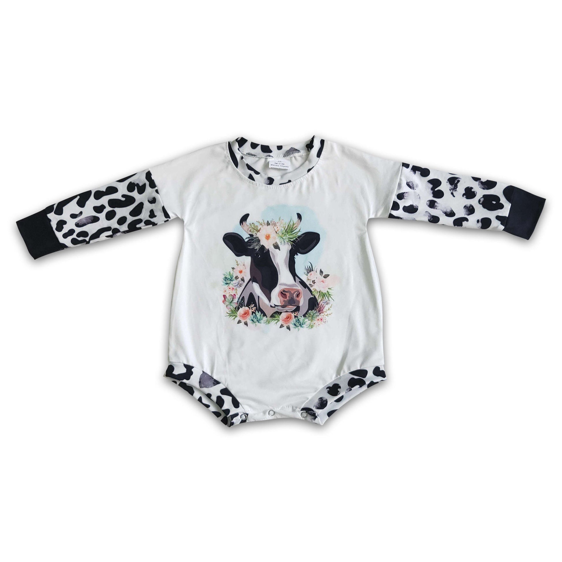 Long sleeves cow romper match bell bottom pants baby girls outfits