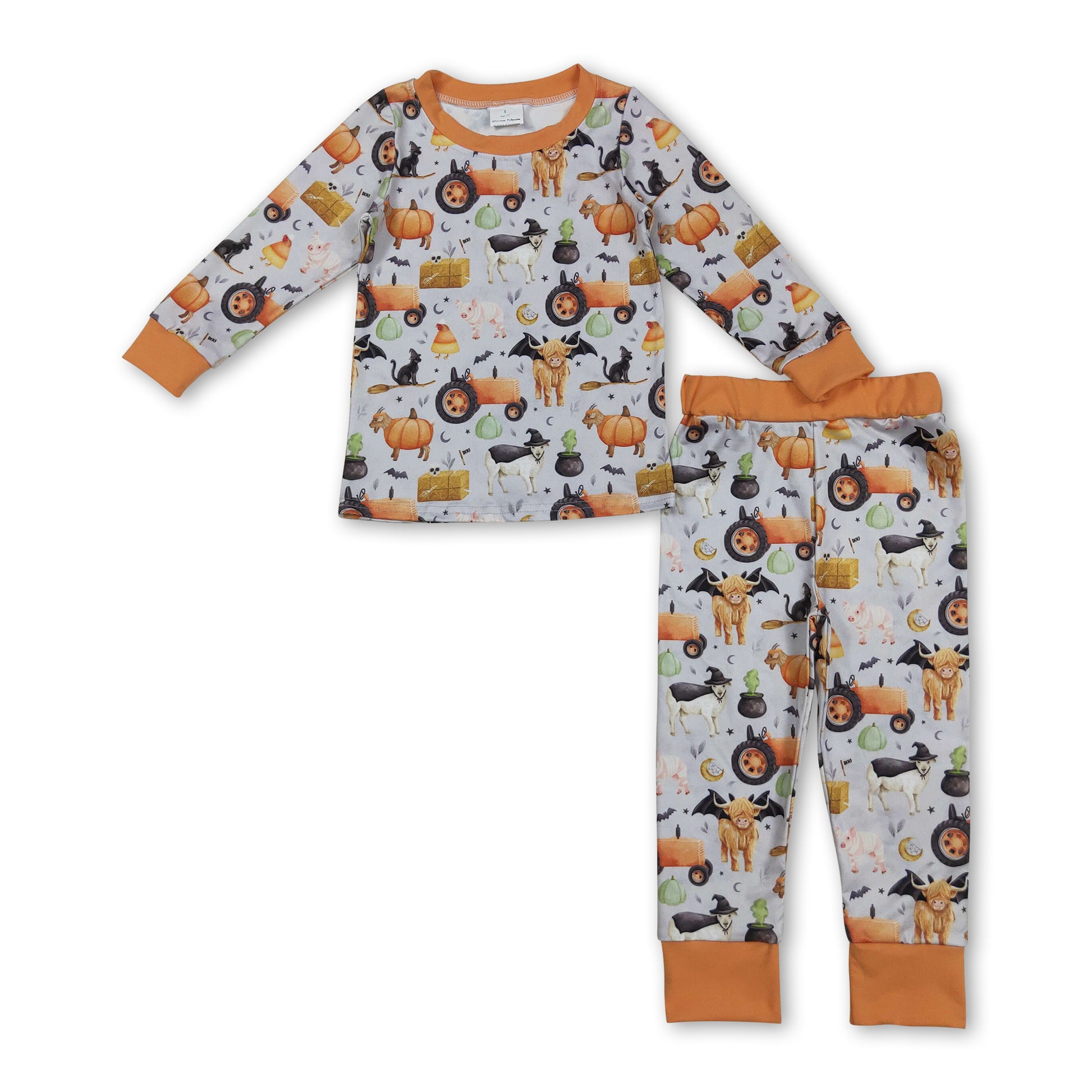 Long sleeves cows tractor pumpkin farm kids Halloween pajamas