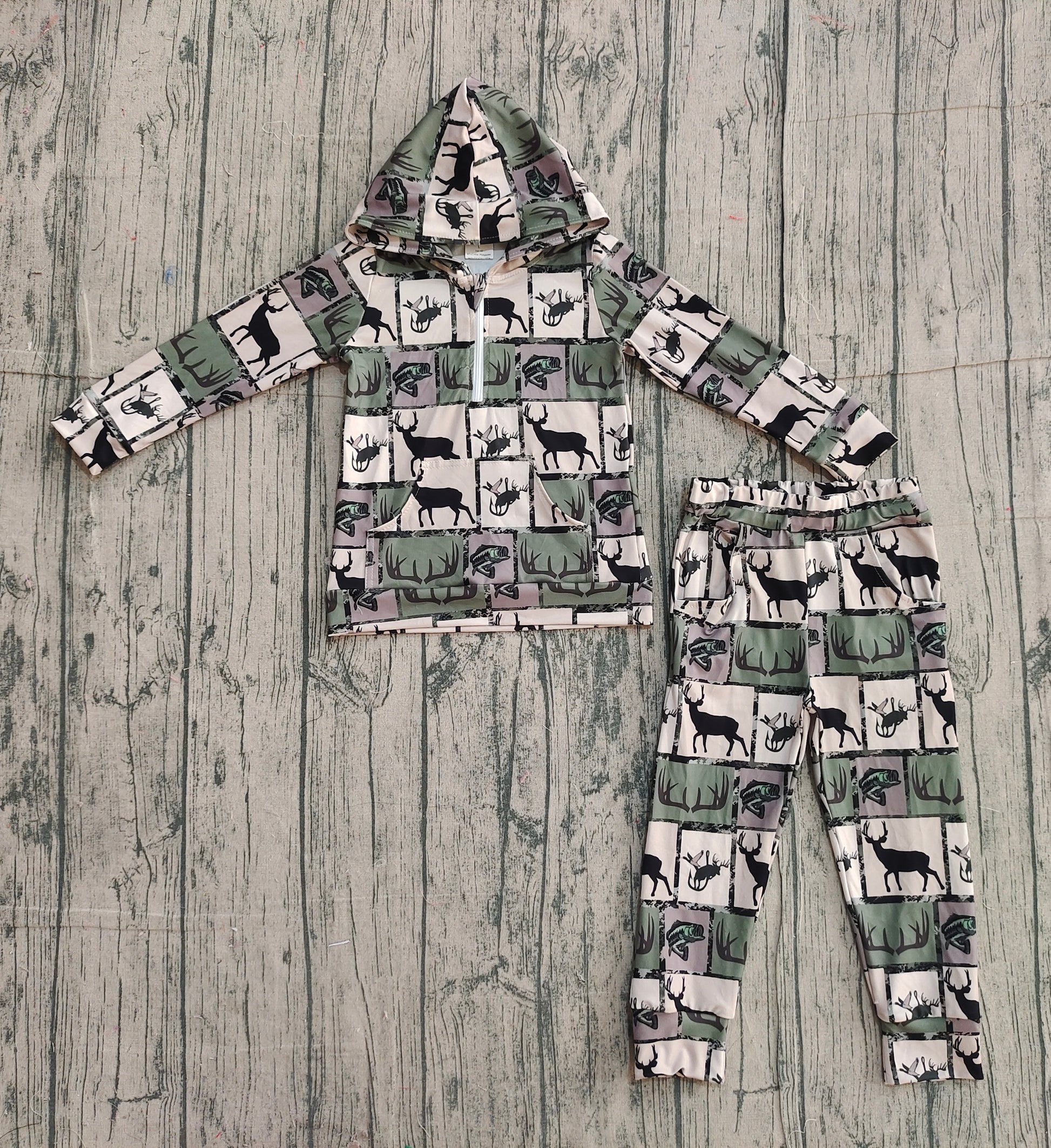 Long sleeves deer fishing hoodie pants hunting boy outfits