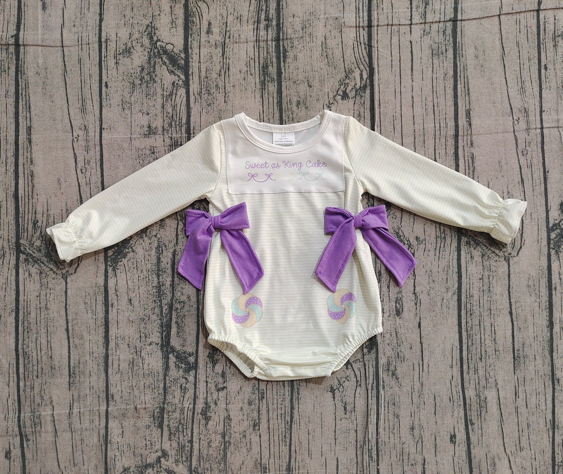 Long sleeves donut bow baby girls Mardi Gras romper