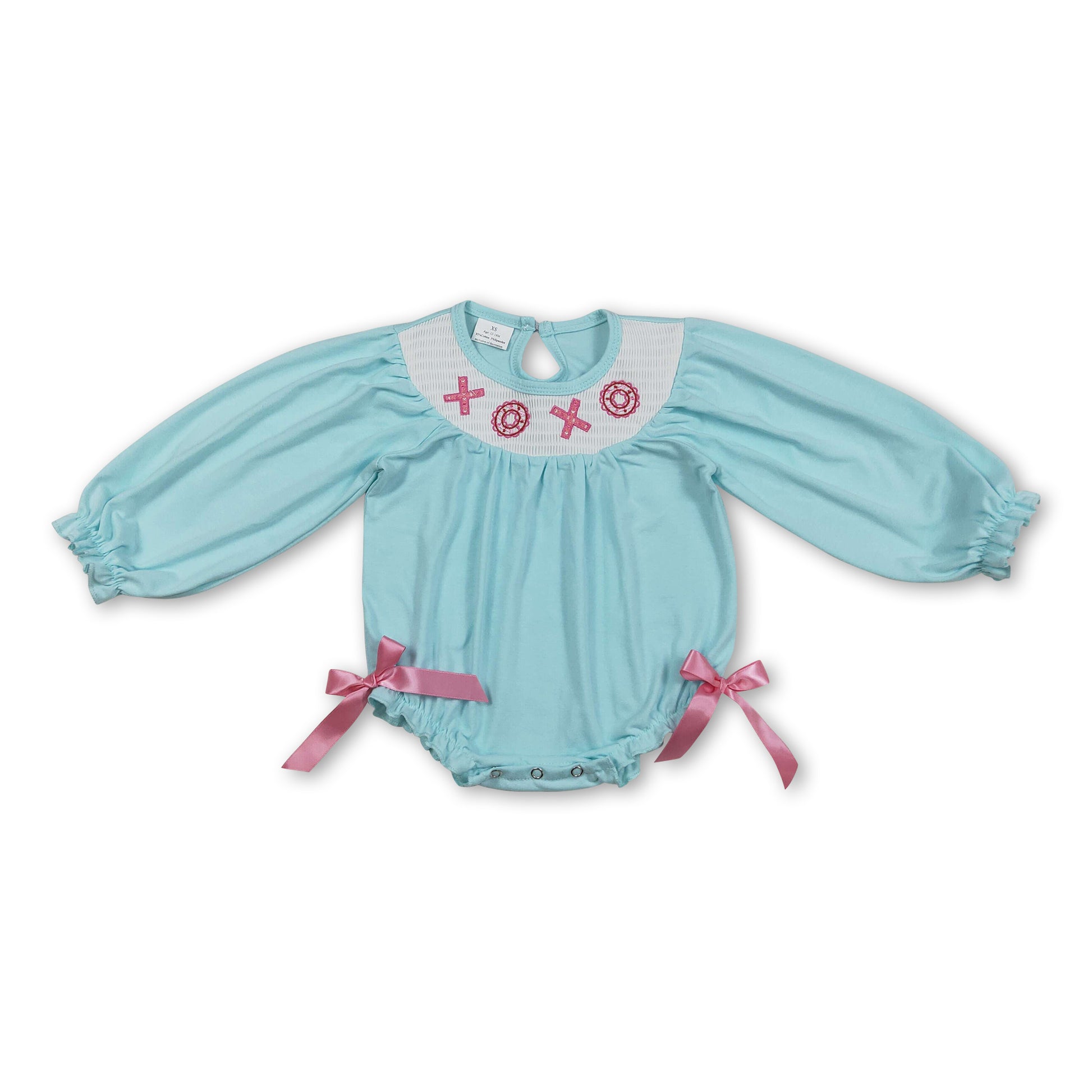 Long sleeves donut XOXO smocked baby girl Valentine's romper