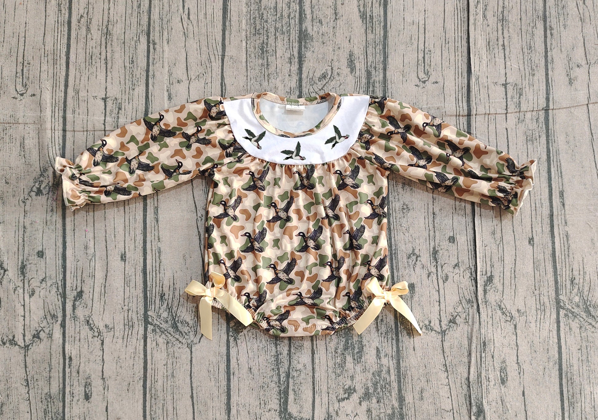 Long sleeves duck camo baby girl romper