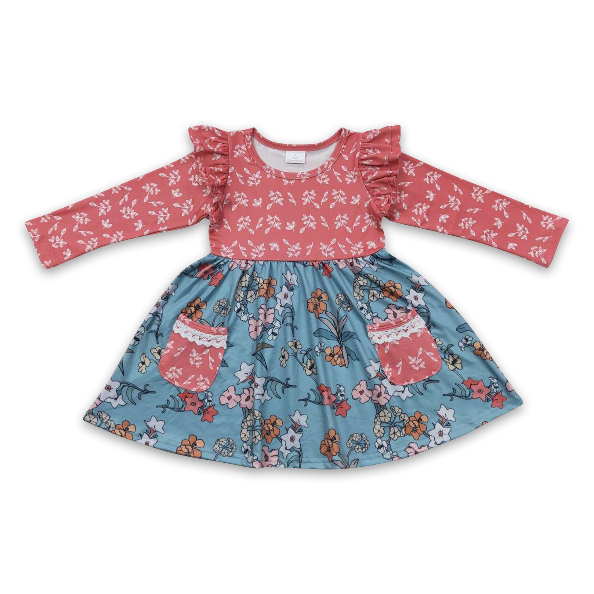 Long sleeves floral pockets girls fall dresses