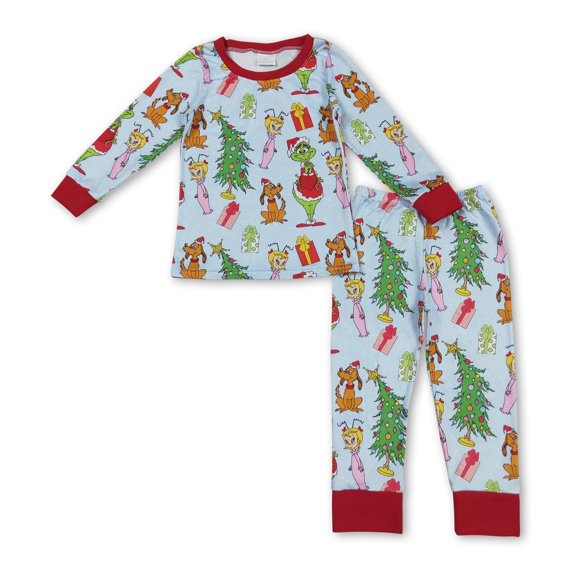 Long sleeves green face Christmas tree baby kids pajamas