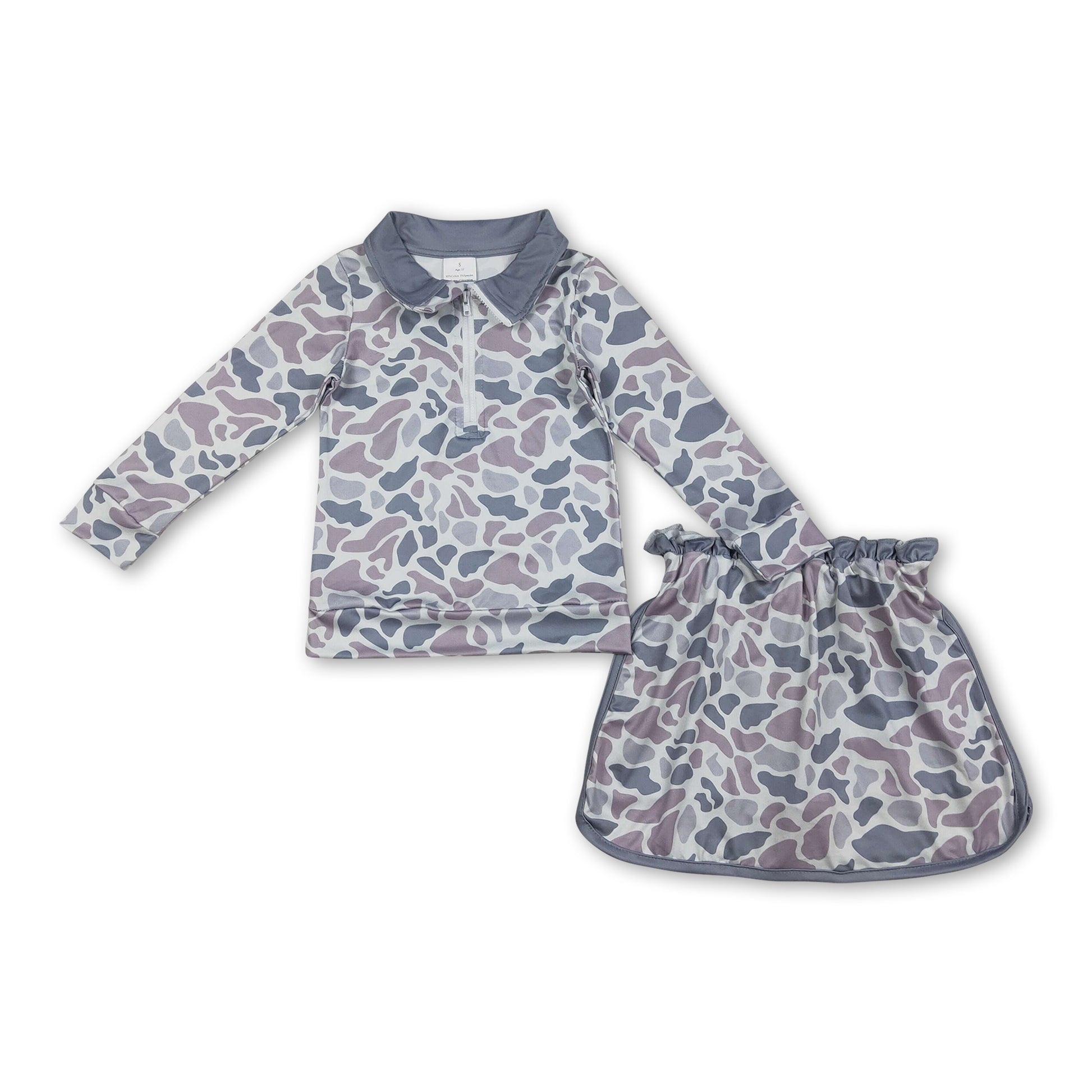 Long sleeves grey camo top skirt baby girls clothing