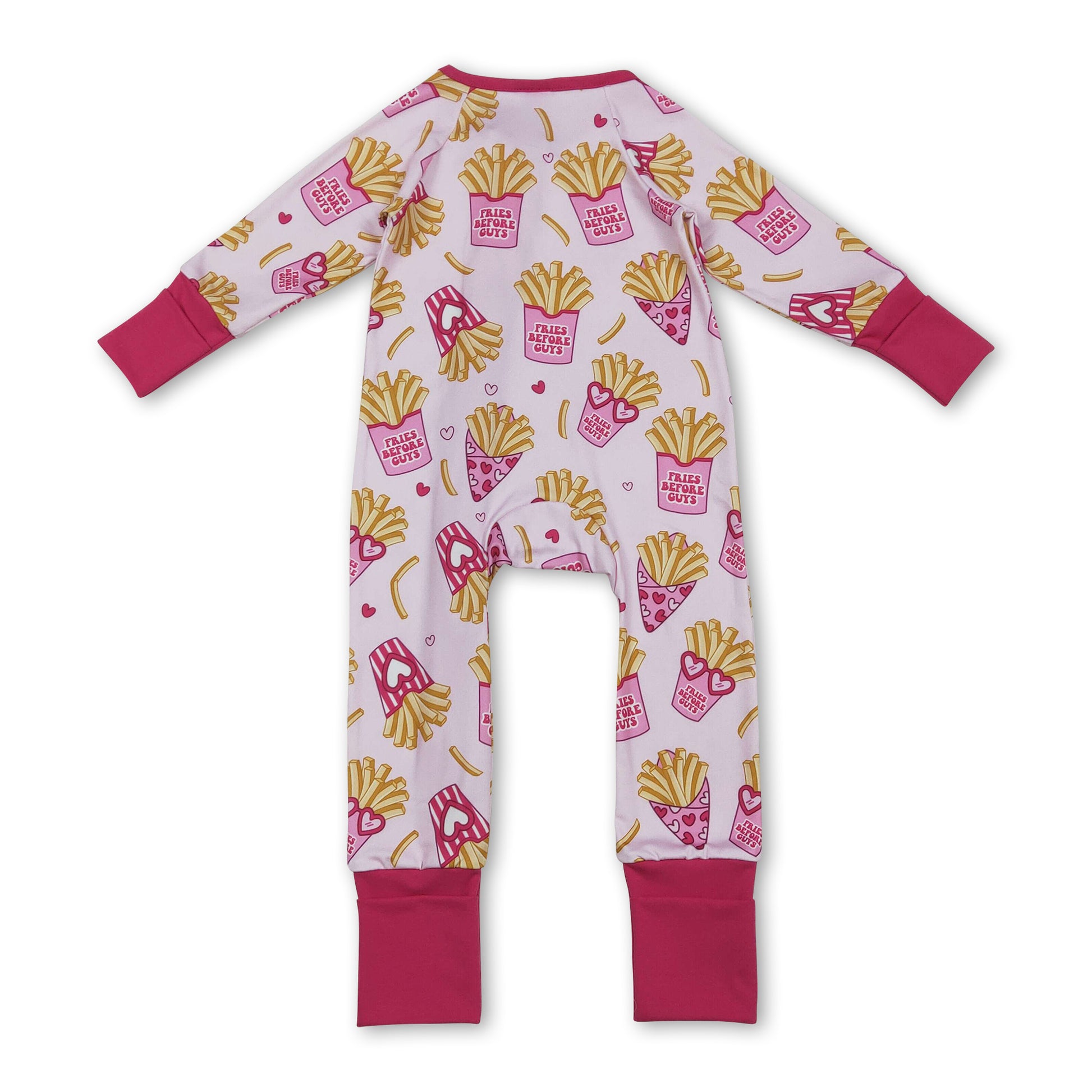 Long sleeves heart fries baby girls Valentine's zipper romper