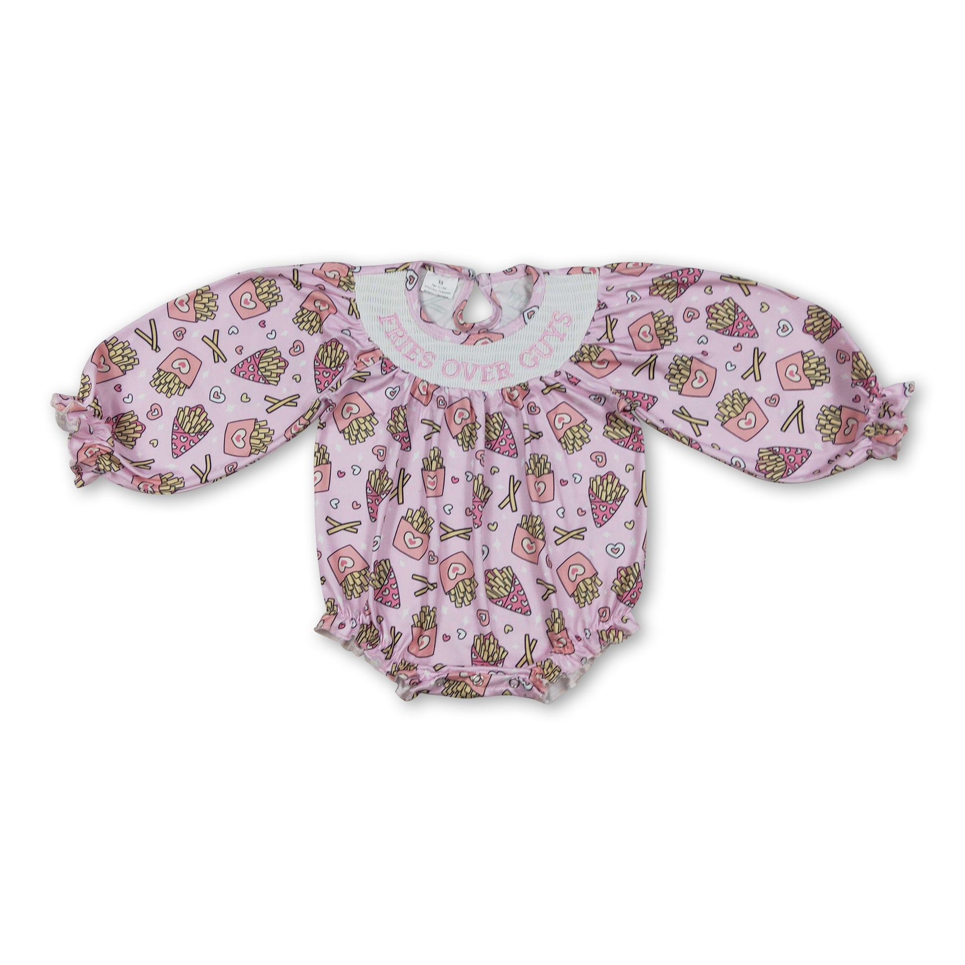 Long sleeves heart fries smocked baby girls Valentine's romper