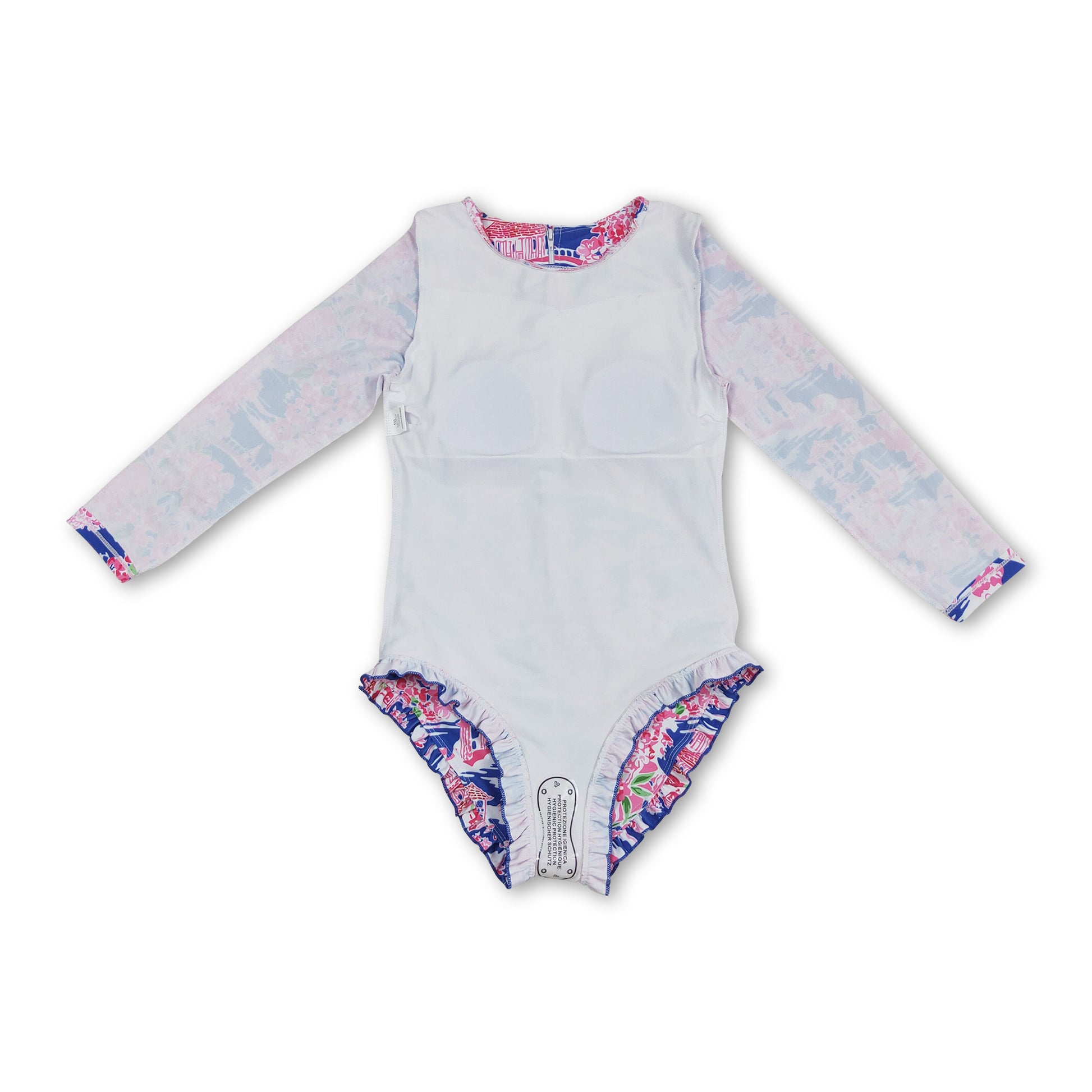 Long sleeves hot pink floral girls summer swimsuit