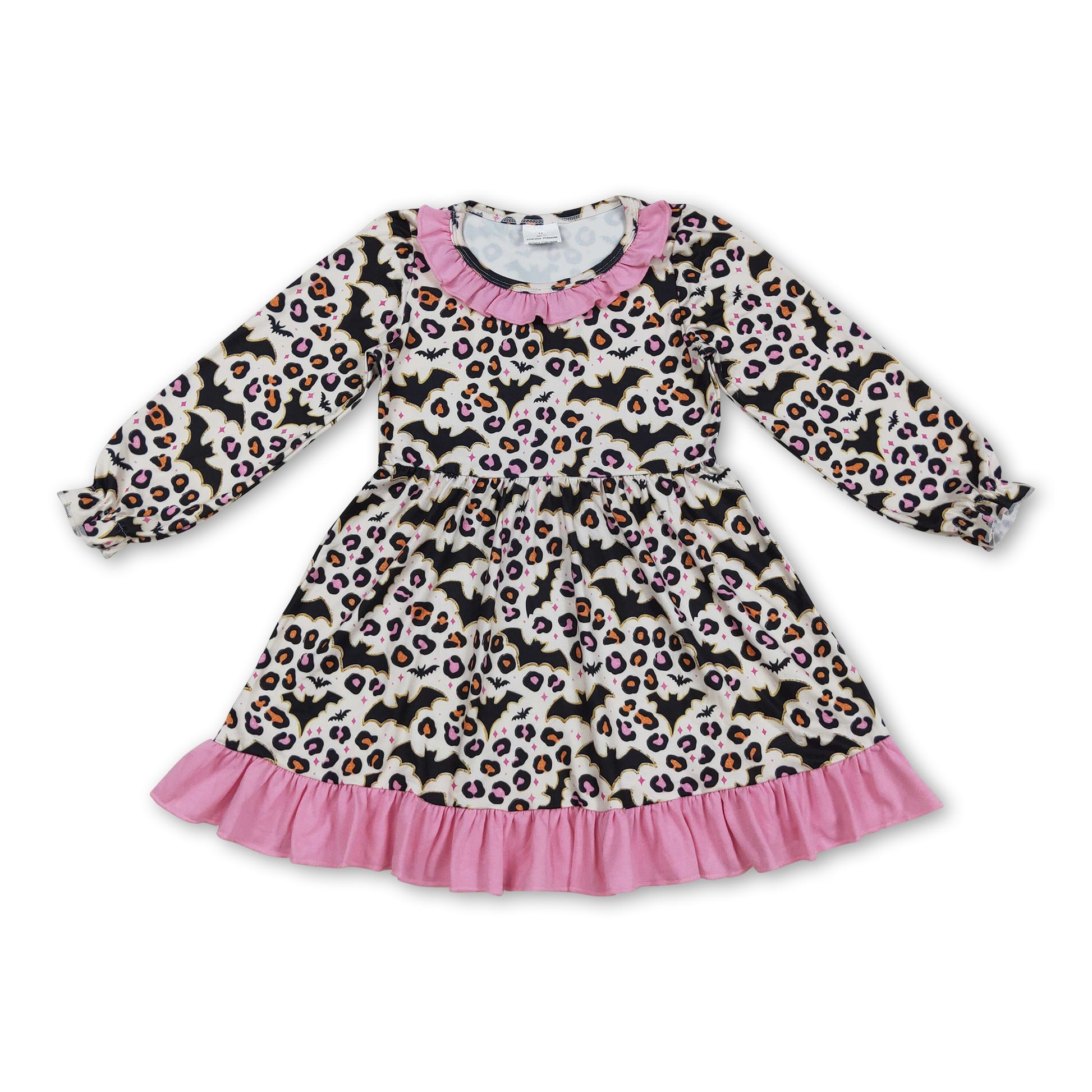 Long sleeves leopard bat ruffle kids girls Halloween dresses