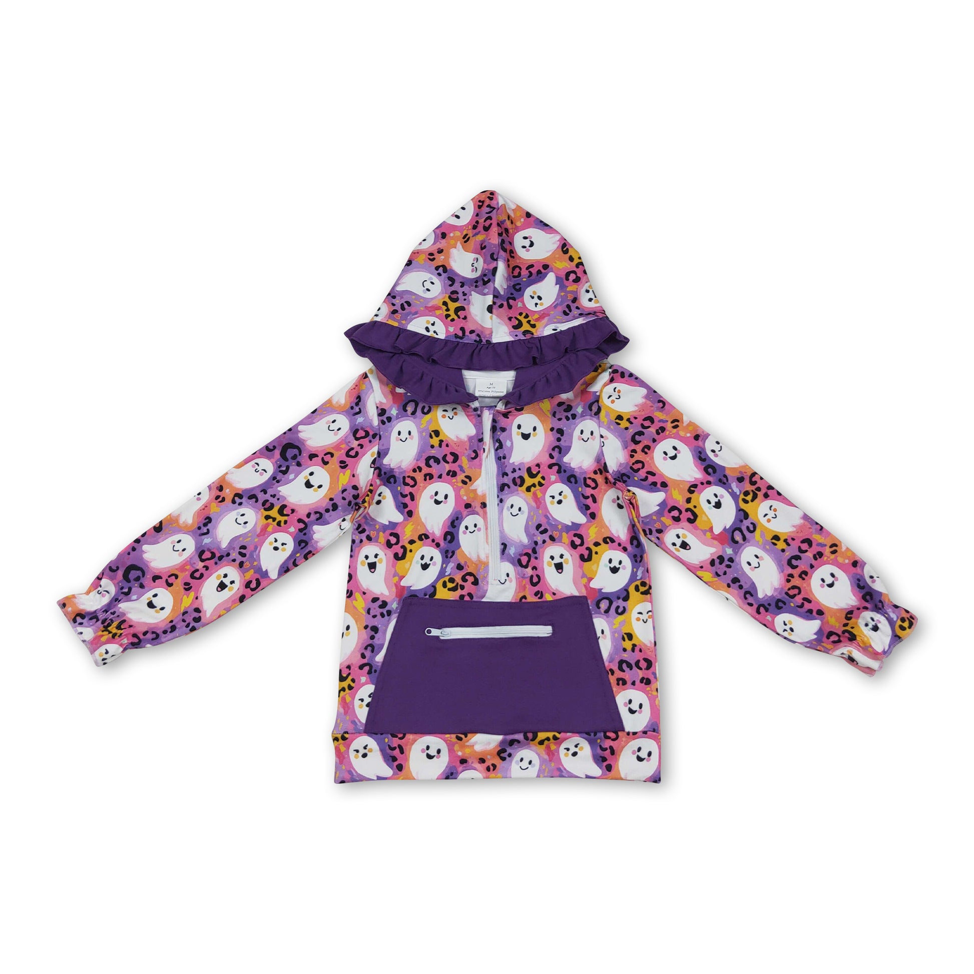 Long sleeves leopard ghost girls Halloween zipper hoodie