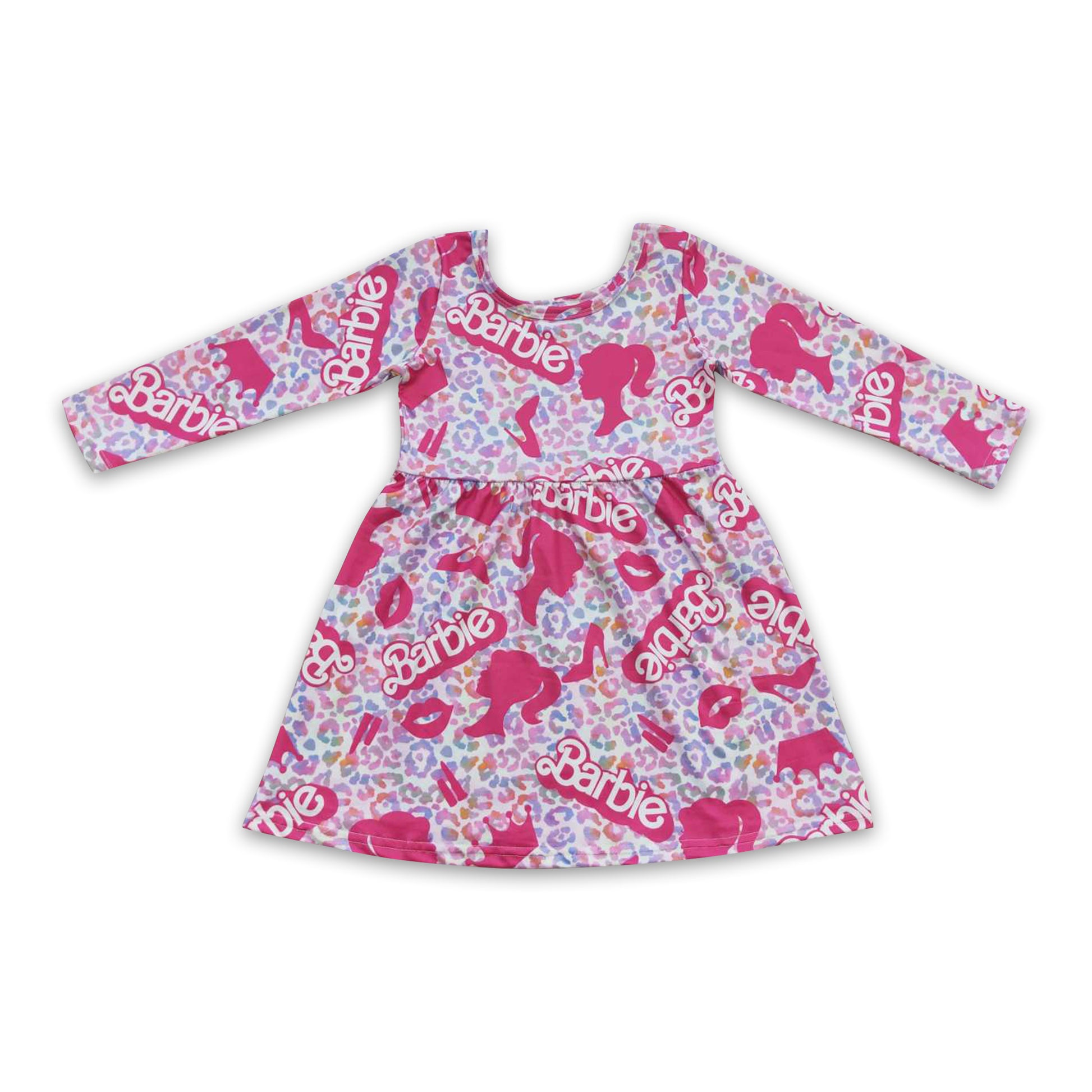 Long sleeves leopard party baby girls dresses