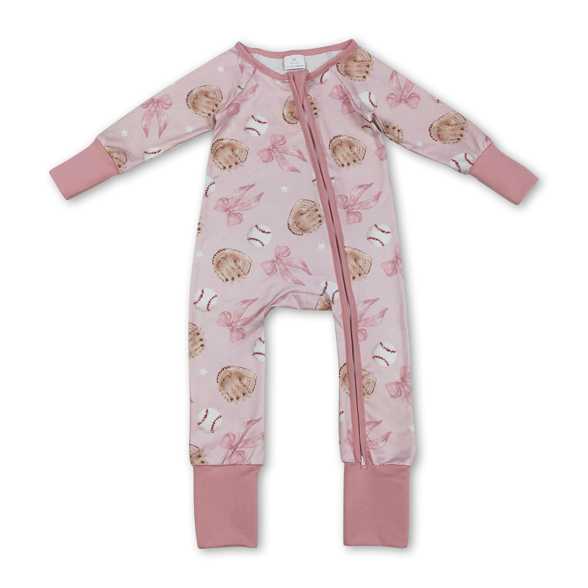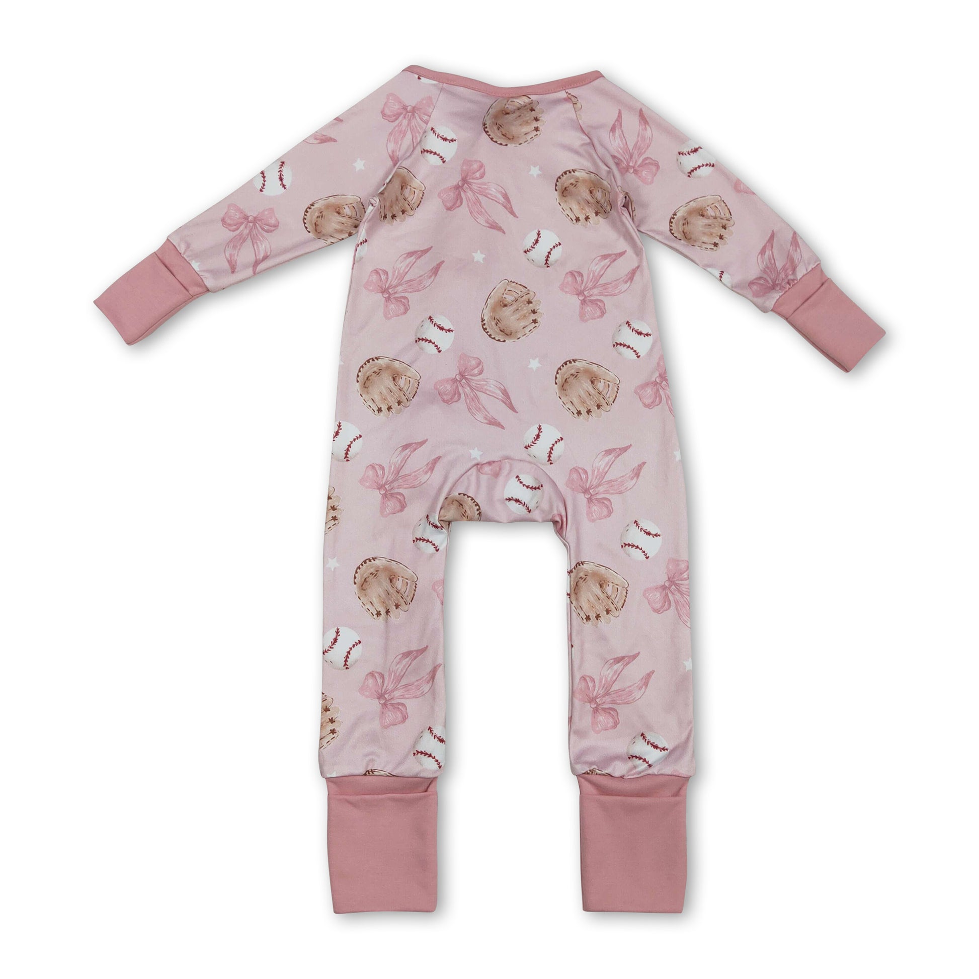 Long sleeves pink bow baseball baby girls zipper romper