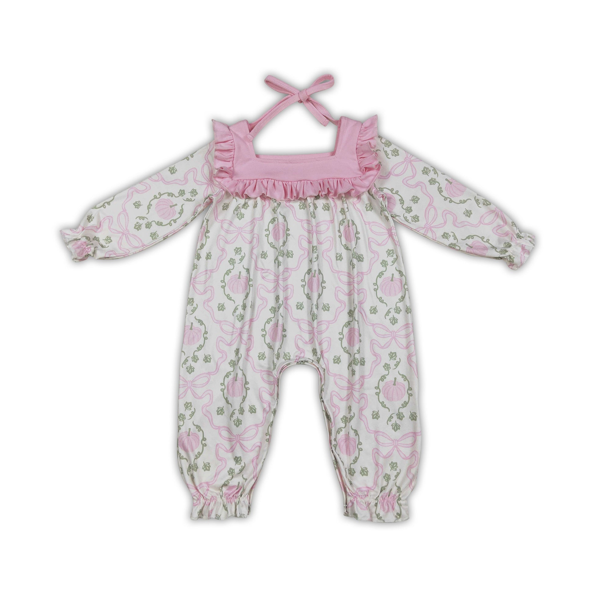 Long sleeves pink bow pumpkin baby girls fall romper