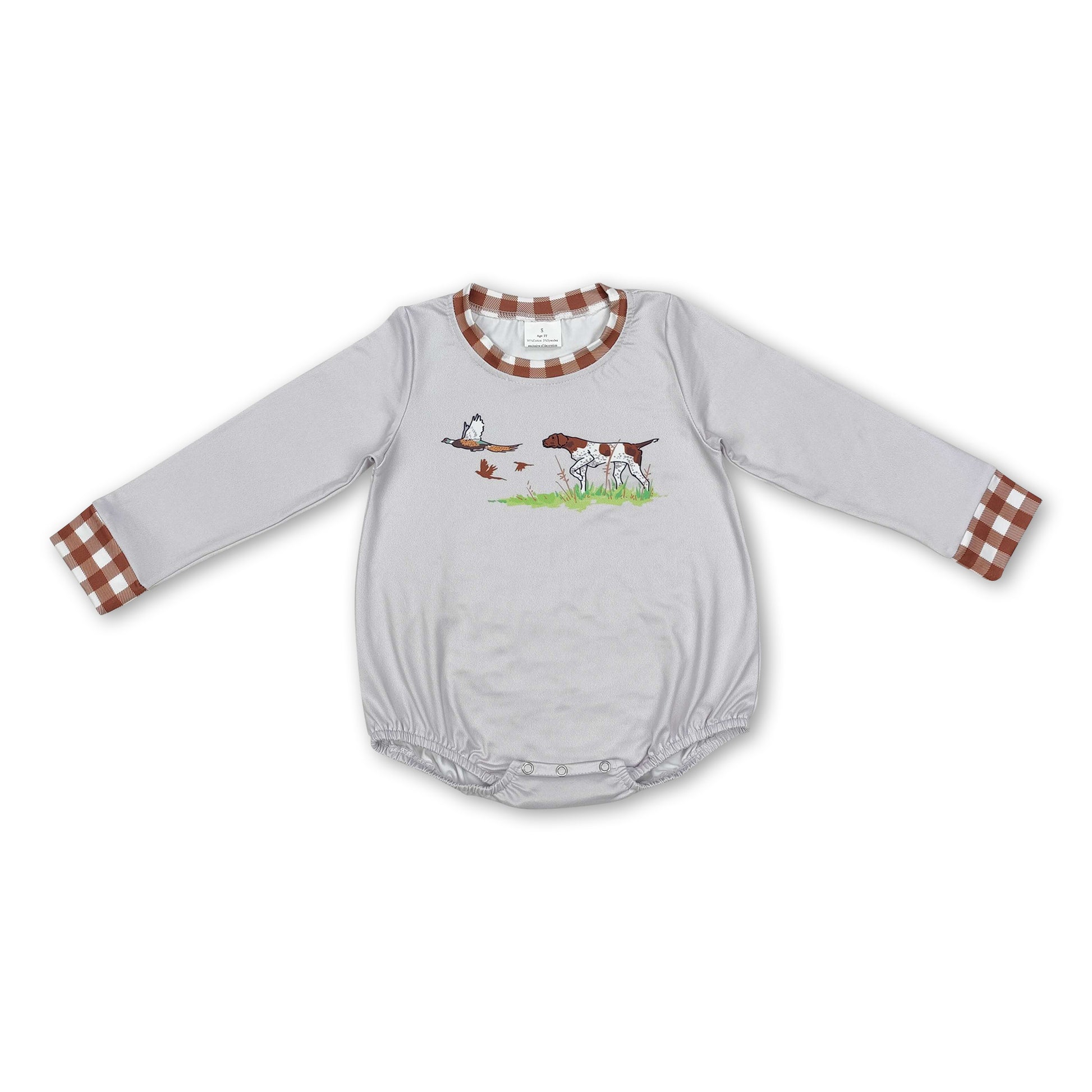 Long sleeves plaid dog duck baby boy hunting romper