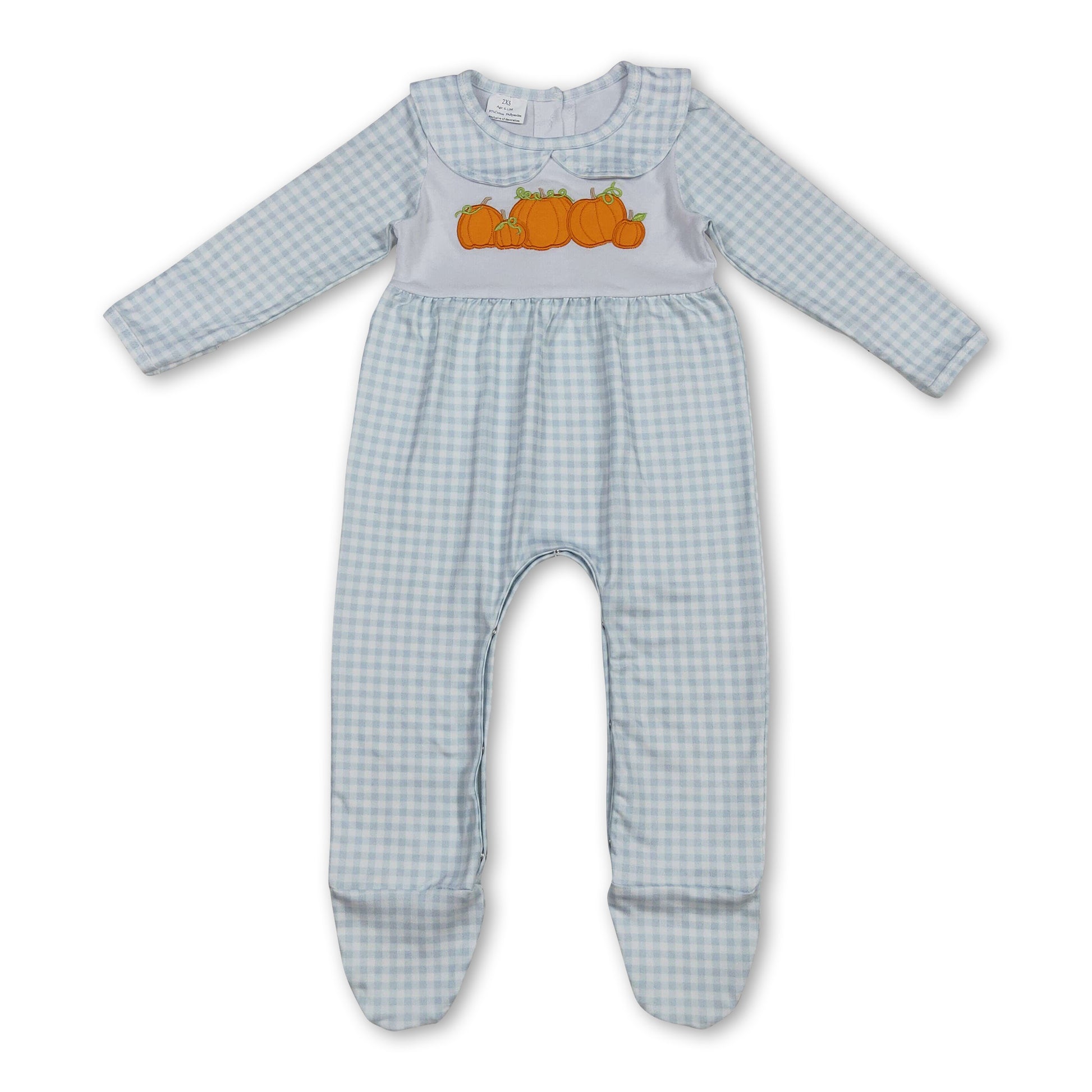 Long sleeves plaid pumpkin baby boy fall footed romper
