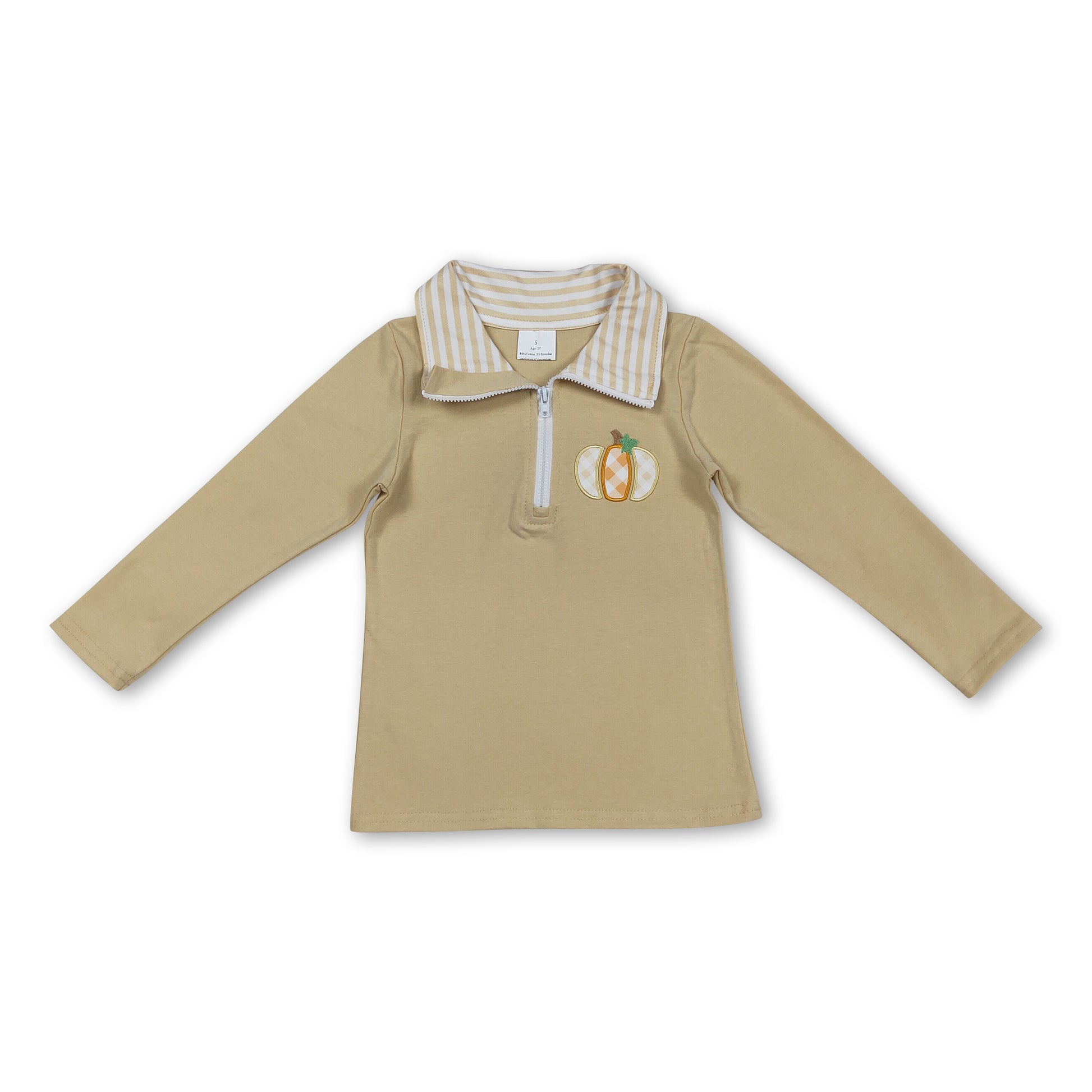 Long sleeves plaid pumpkin kids boys fall zipper pullover