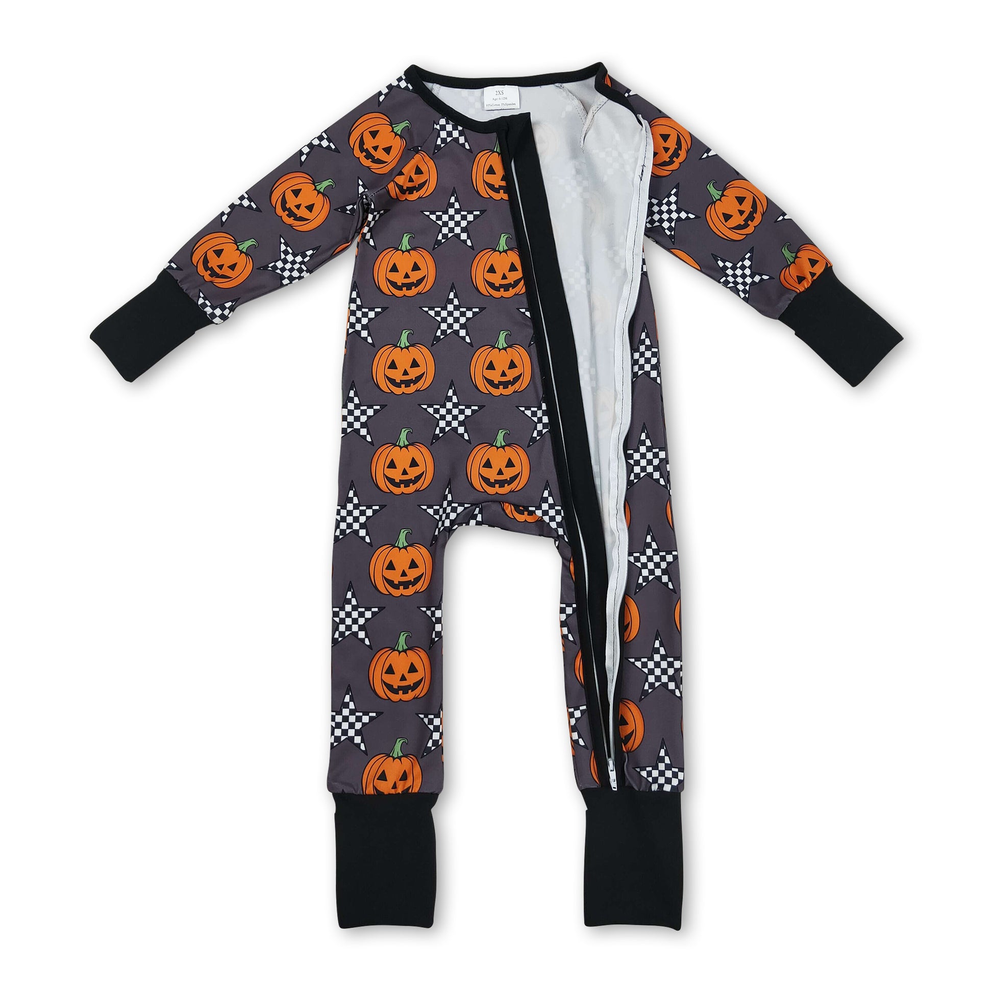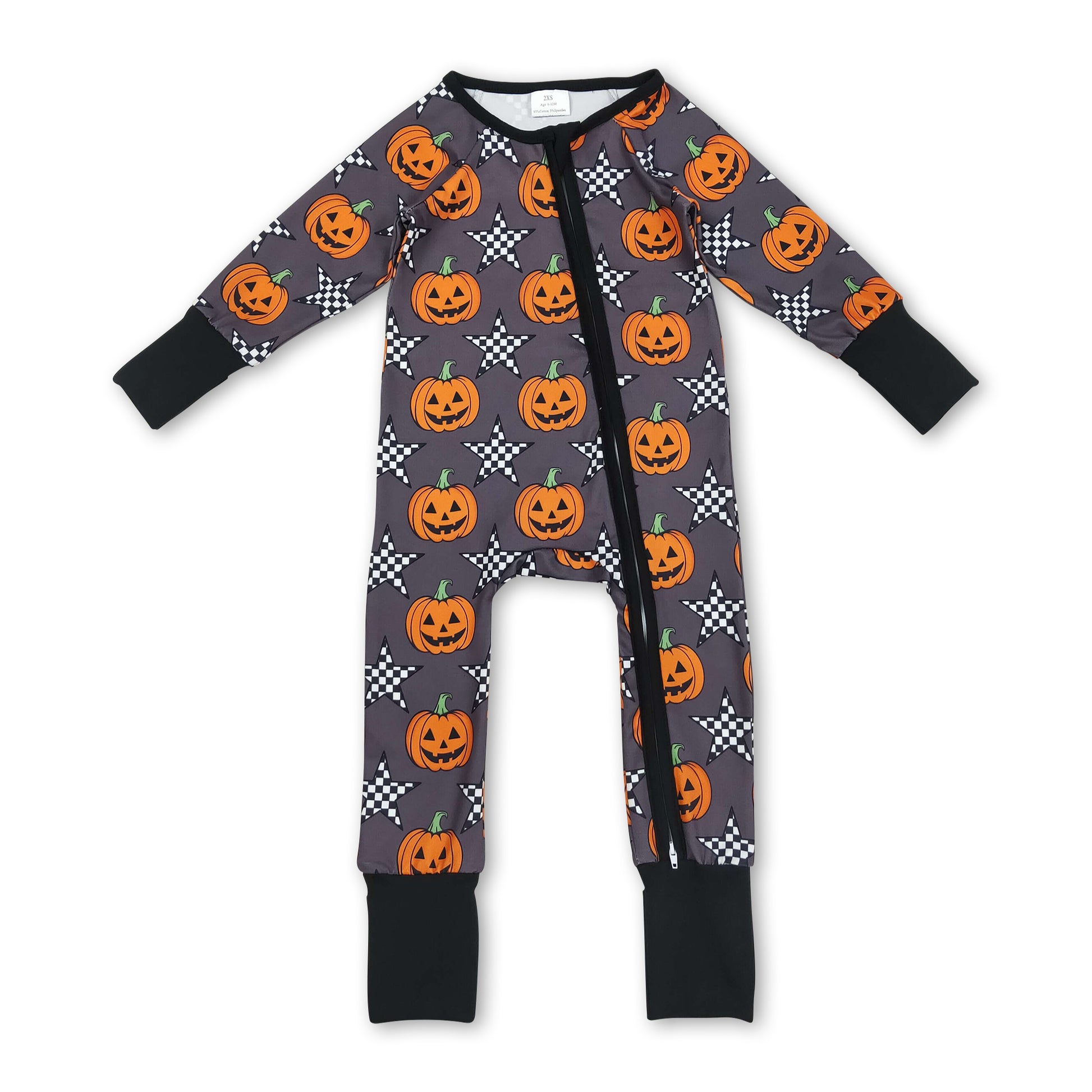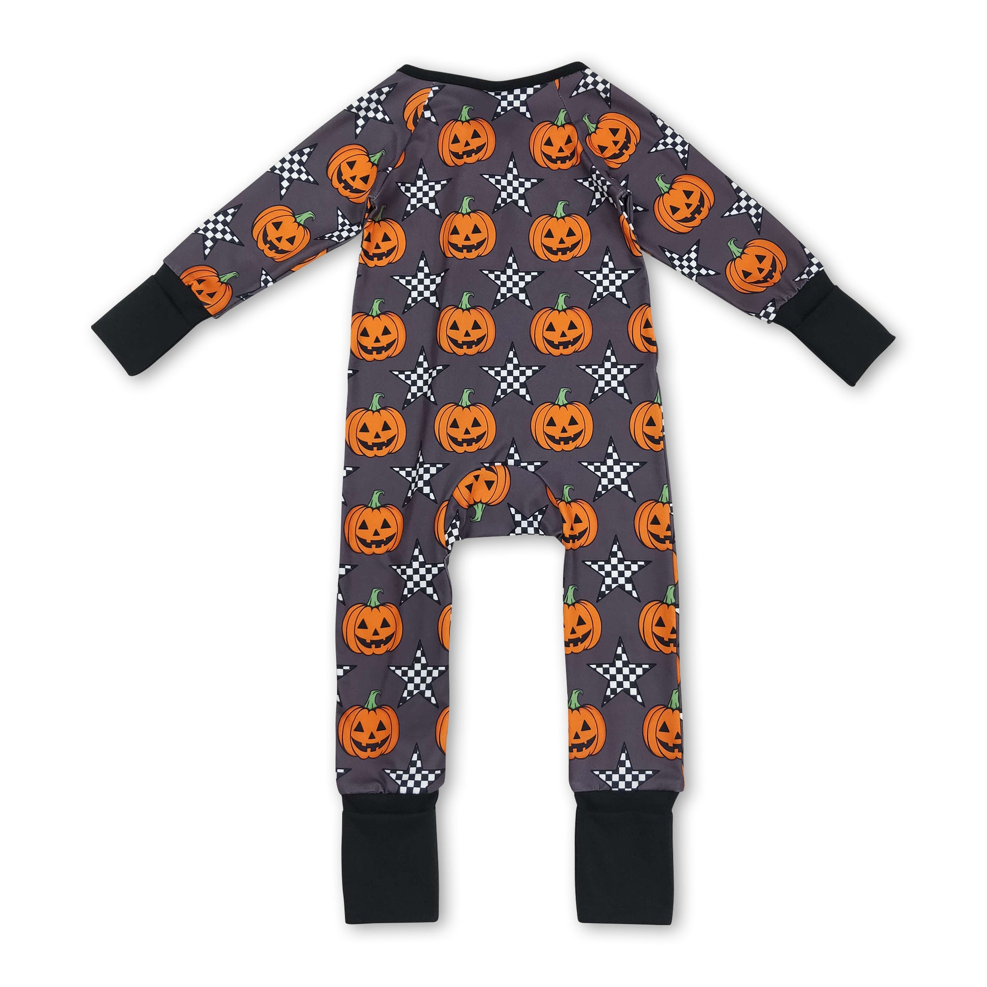 Long sleeves pumpkin plaid star baby Halloween zipper romper