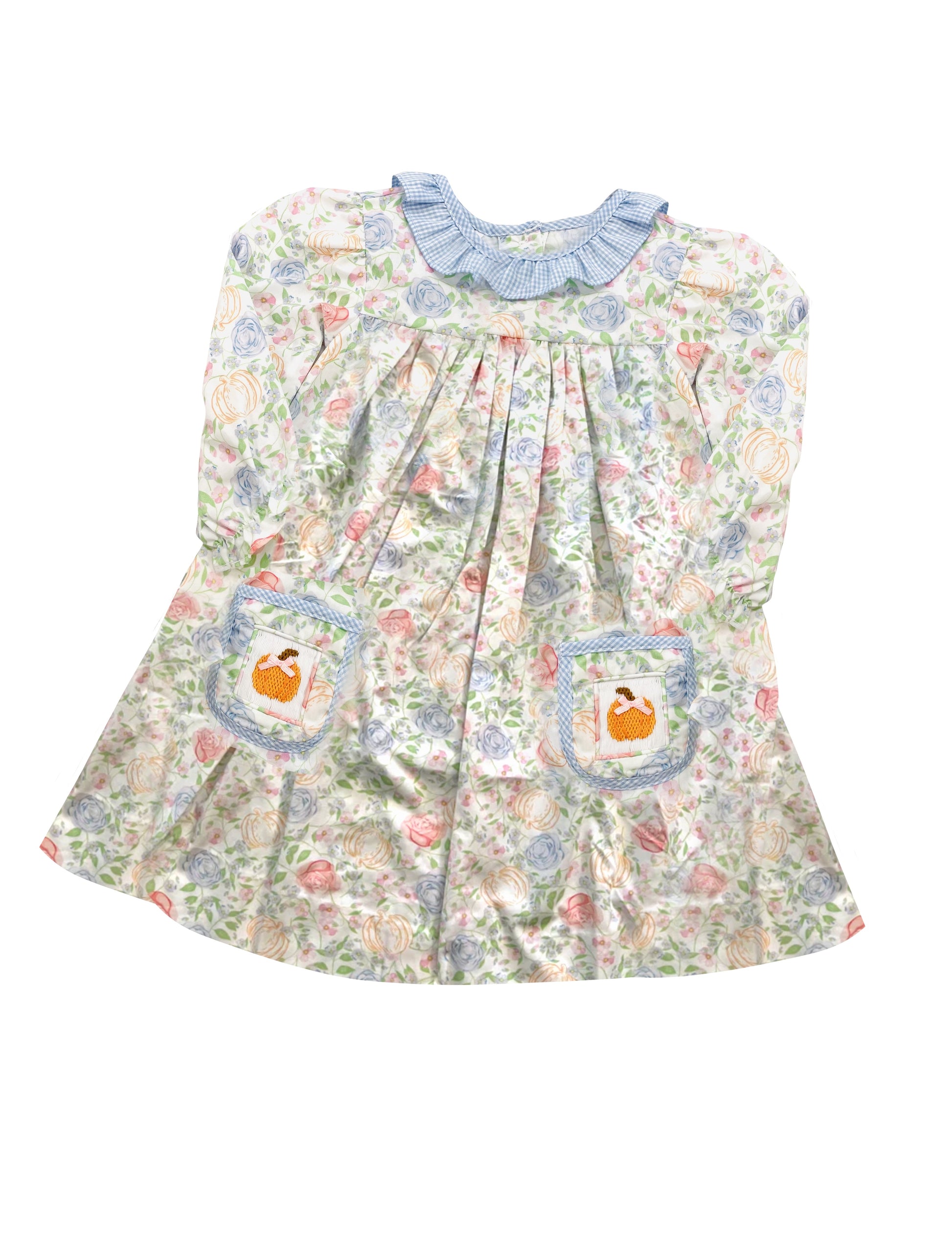 Long sleeves pumpkin pockets floral kids girls fall dress