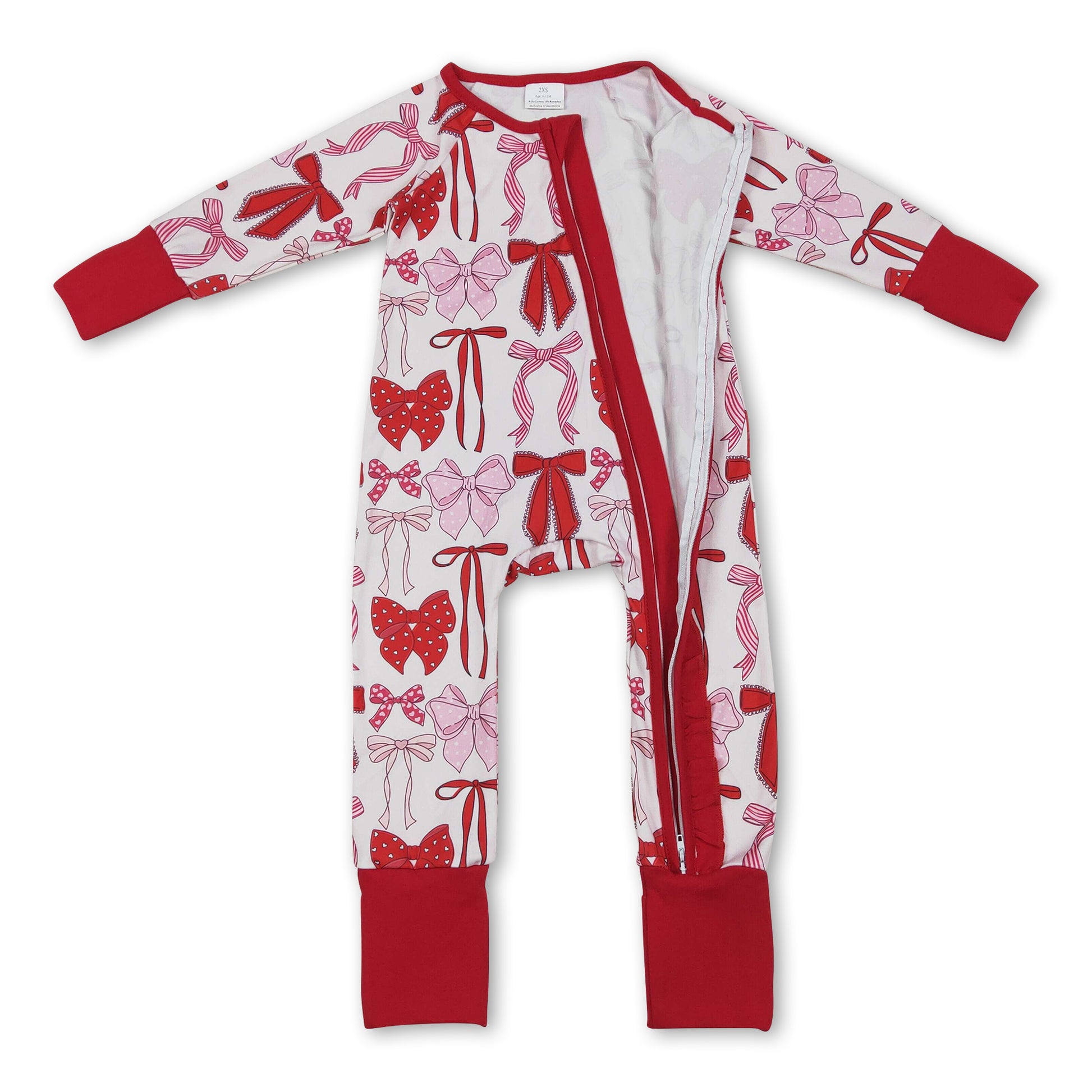Long sleeves red pink bows baby girls zipper romper