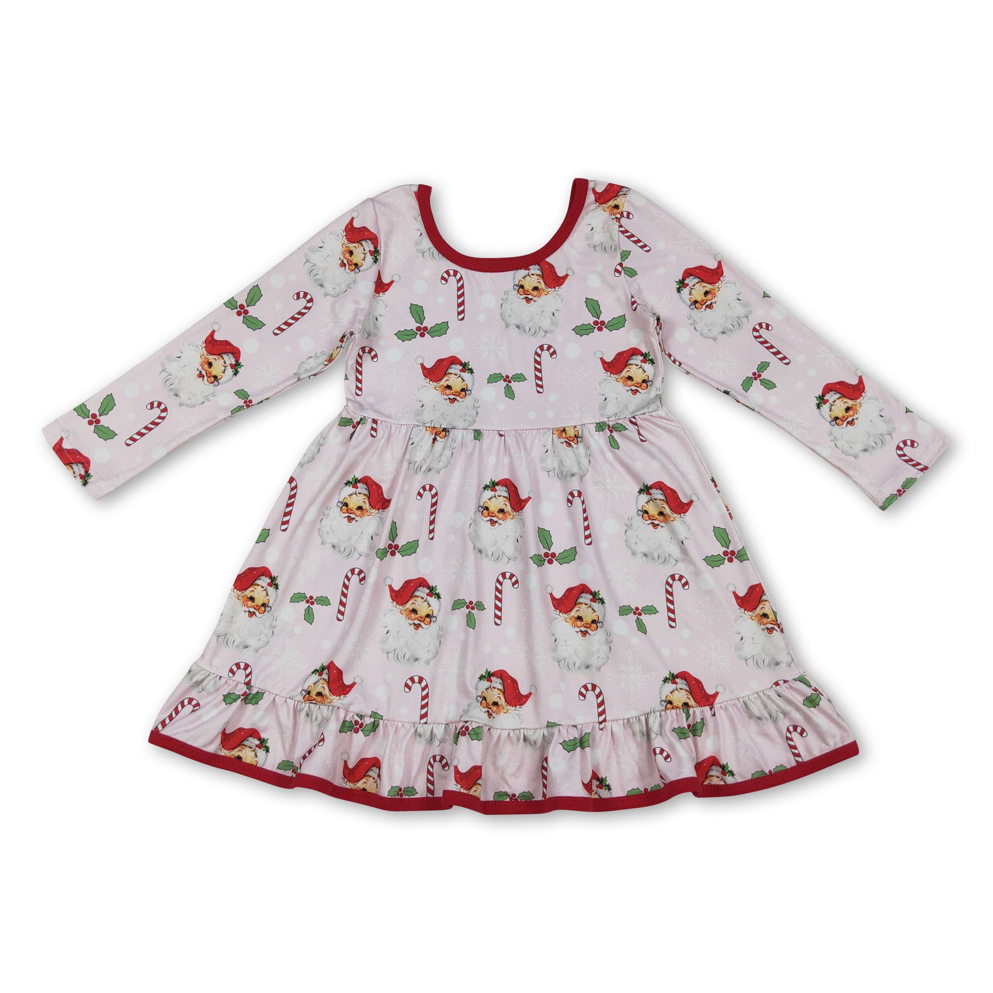 Long sleeves santa candy cane ruffle girls Christmas dresses