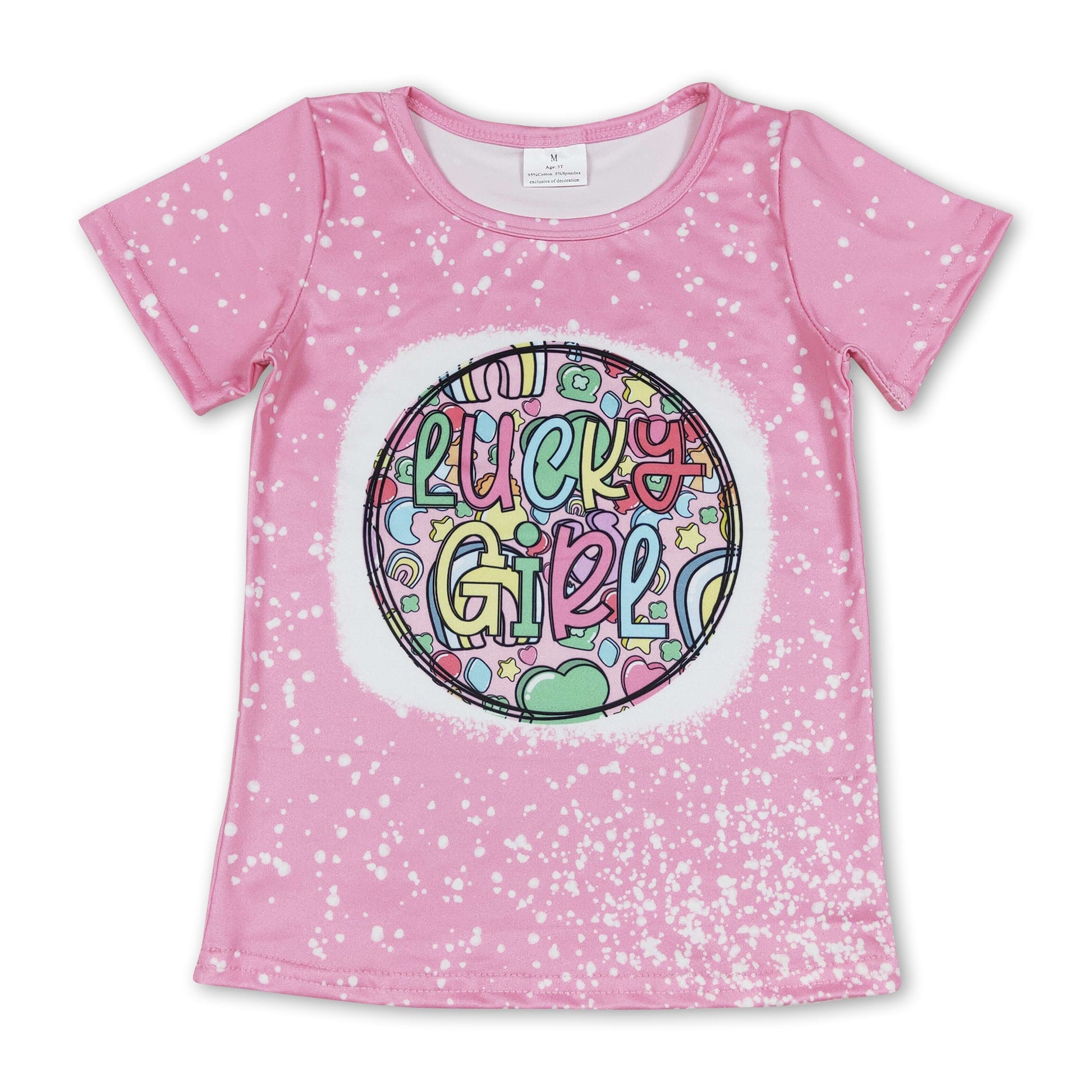 Lucky girl clover short sleeves girls st patrick's day shirt