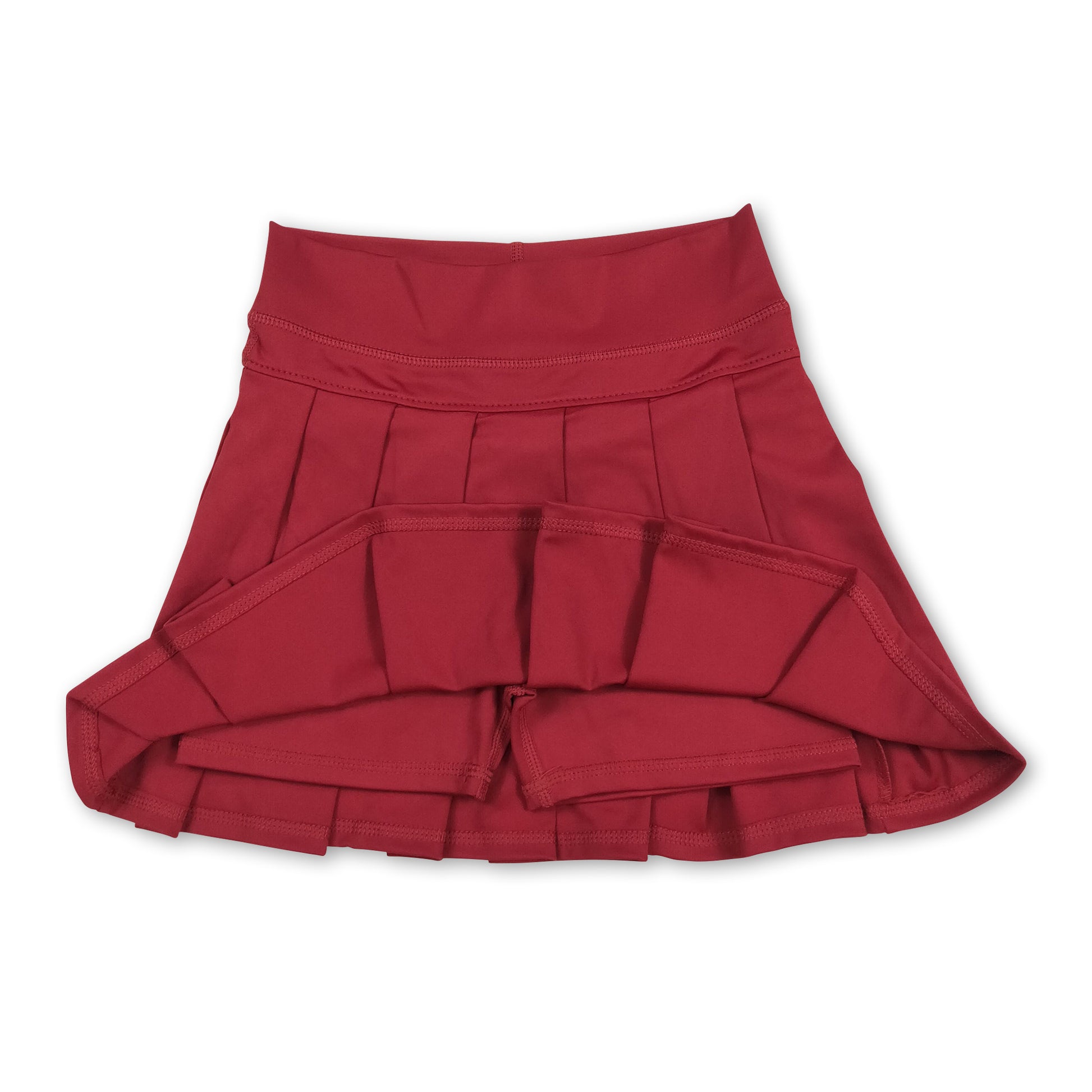 Maroon high waist kids girls summer activewear pleated skorts