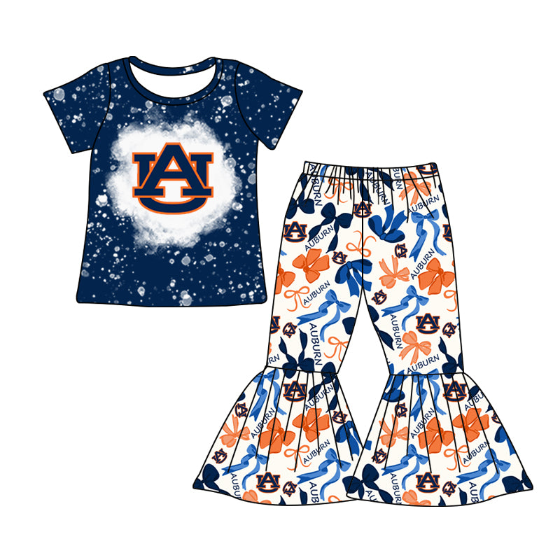 MOQ 3 pcs Bleached A U top bow pants kids girls team clothes