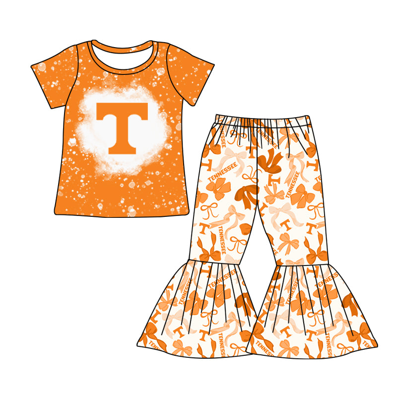 MOQ 3 pcs Bleached yellow T top bow pants kids girls team clothes