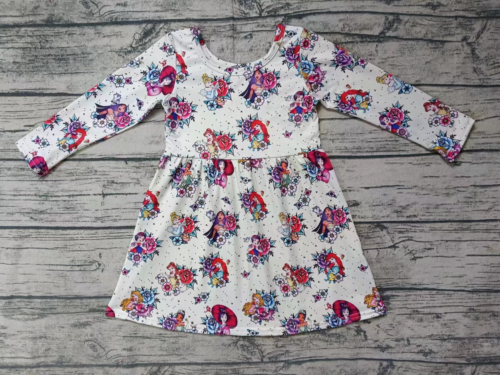MOQ 3 pcs long sleeves floral princess girls dresses