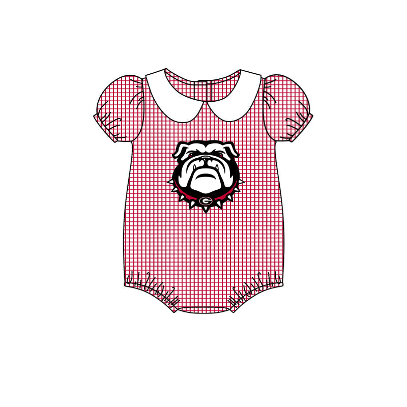 MOQ 3 pcs Red plaid short sleeves G girls team romper